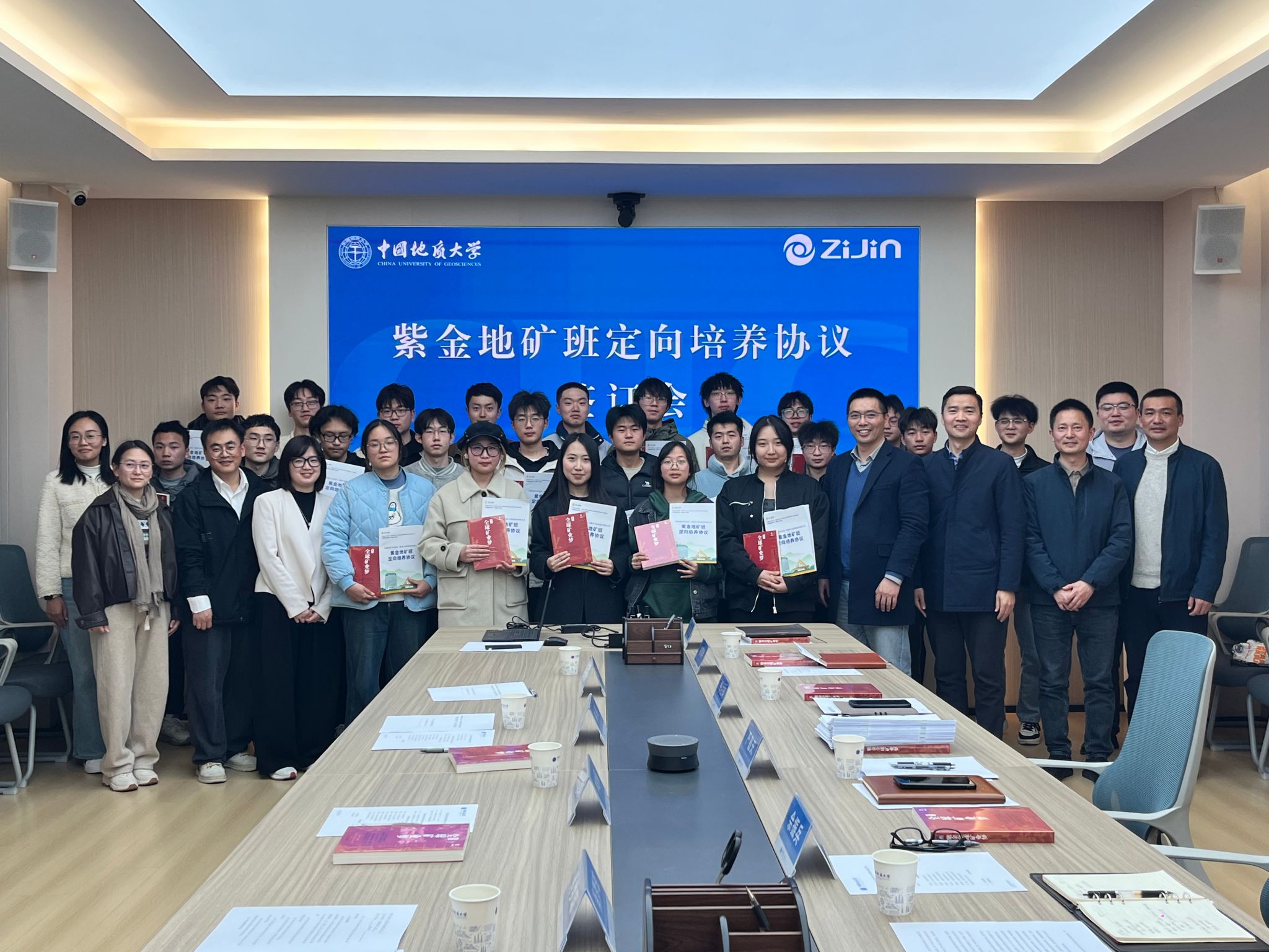 随后,在庄重而热烈的氛围中,紫金矿业集团股份有限公司代表与学生逐一签署了定向培养协议。这一协议的签订,标志着紫金地矿班的学生将正式踏上专业成长和职业发展的快车道。