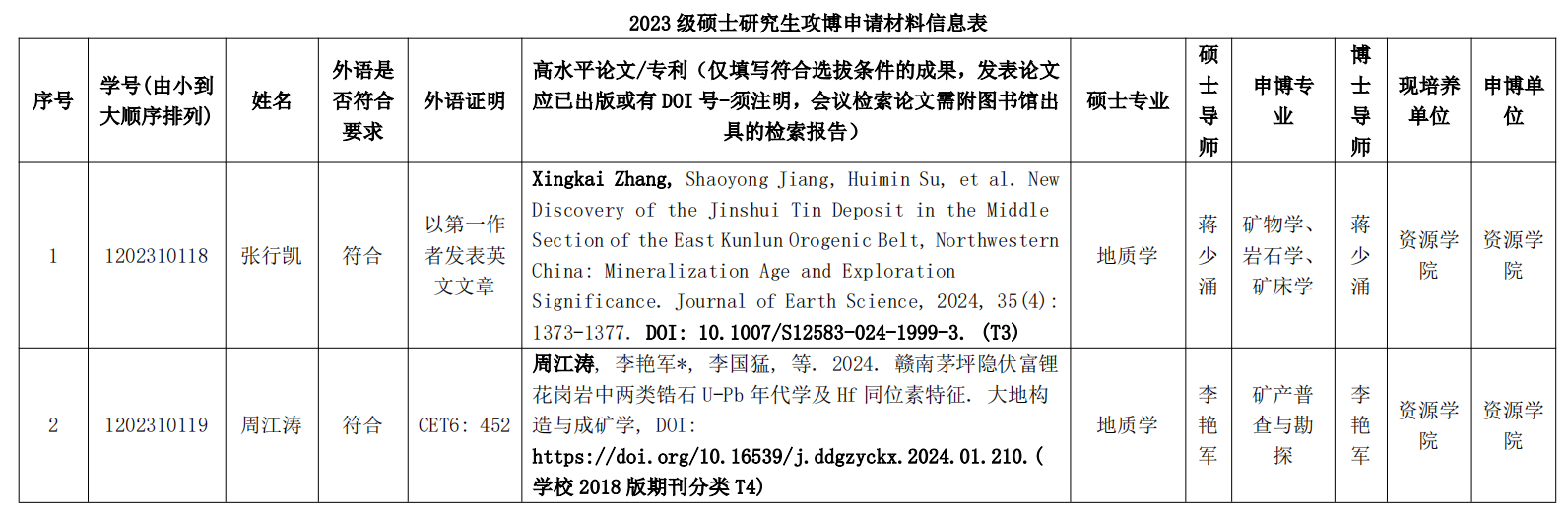 经硕士研究生个人申请、导师推荐和跳高高电子 初审,资源跳高高电子 2023级硕士研究生申请提前攻读博士学位拟推荐名单公示如下。如有异议请公示期内书面反馈意见至跳高高电子 研究生科(336室)。联系人:赵老师,电话:67883627。