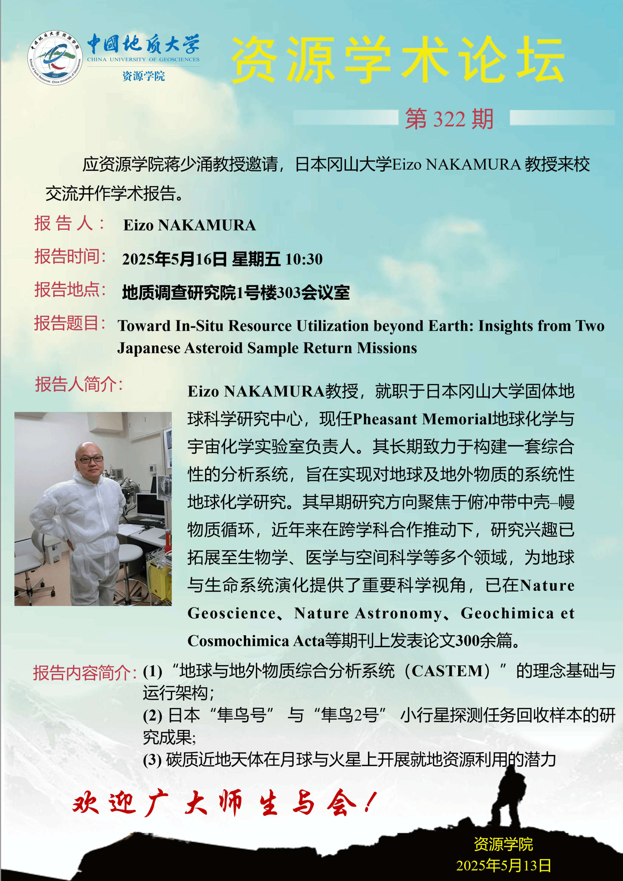 【5月16日】第322期跳高高电子论坛 :Eizo NAKAMURA学术报告