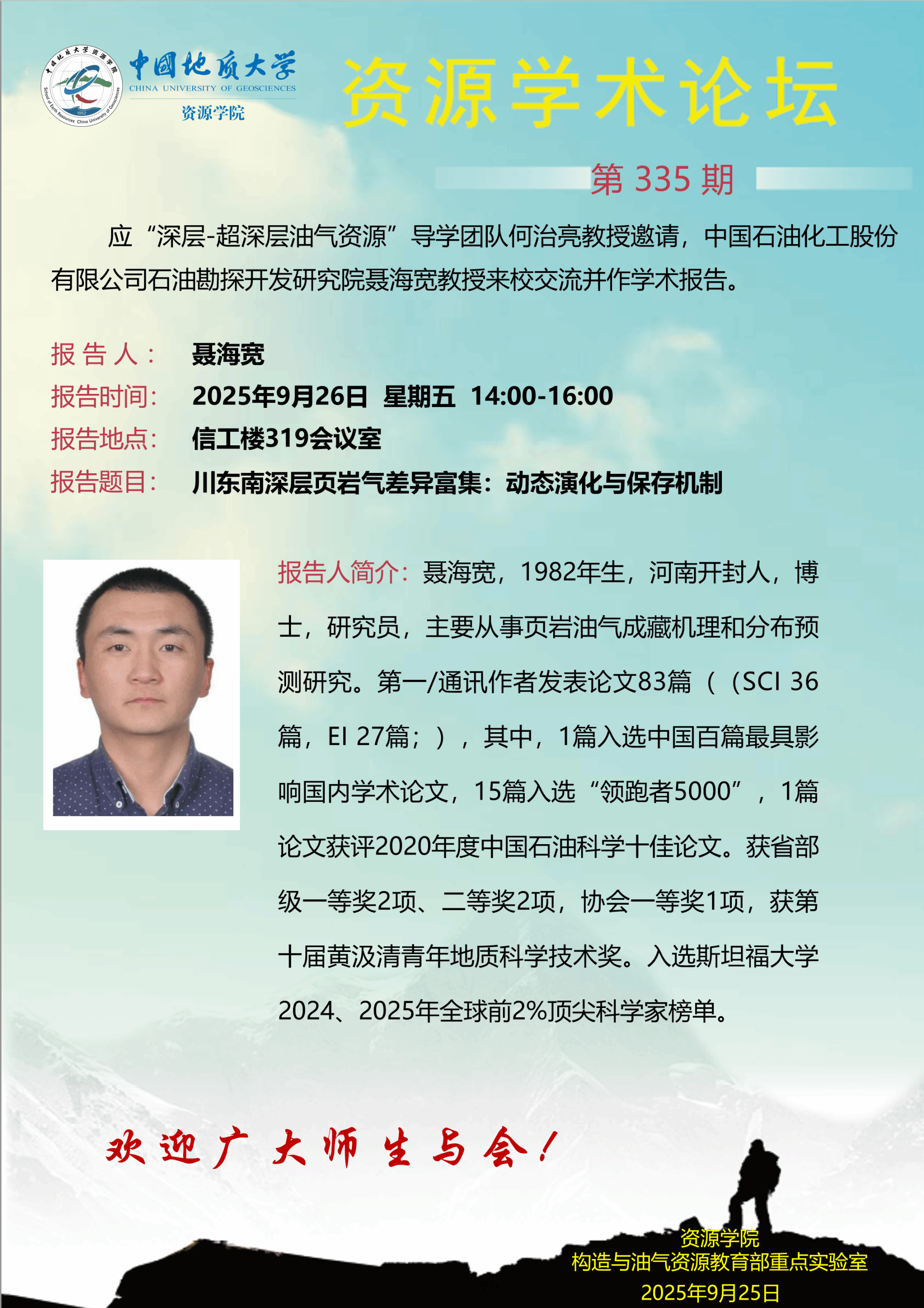 上一条: 【9月26日】第336期跳高高电子论坛 :Sandra学术报告 下一条:GSA Bulletin丨平宏伟等:流体包裹体和方解石U-Pb定年揭示构造控制的断裂带内差异流体流动和蚀变