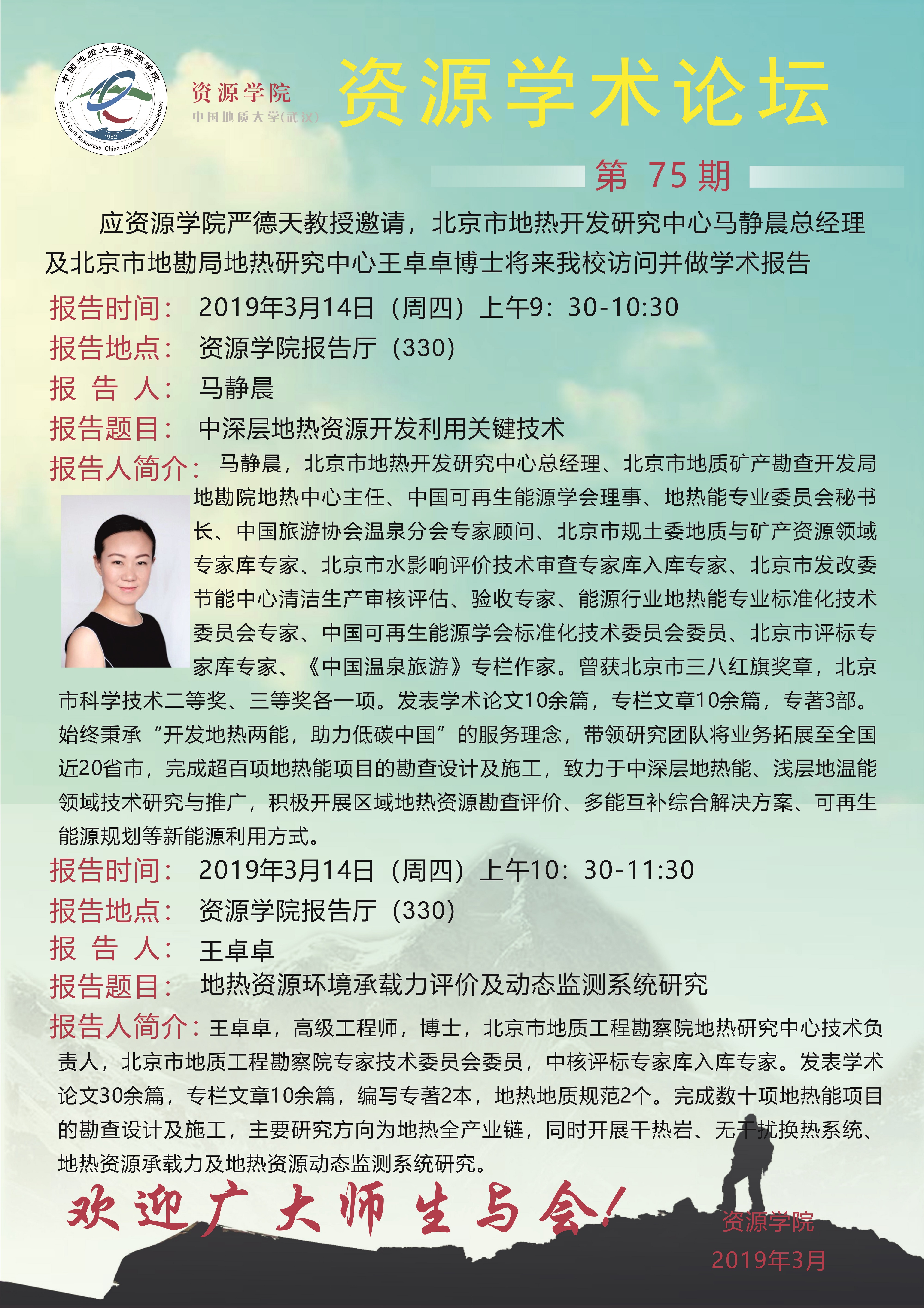 【3月14日】第75期跳高高电子论坛 :马静晨、王卓卓学术报告