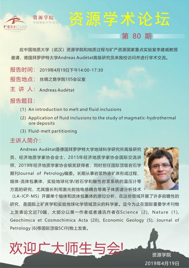 【4月19日】第80期跳高高电子论坛 :Andreas Audetat学术报告