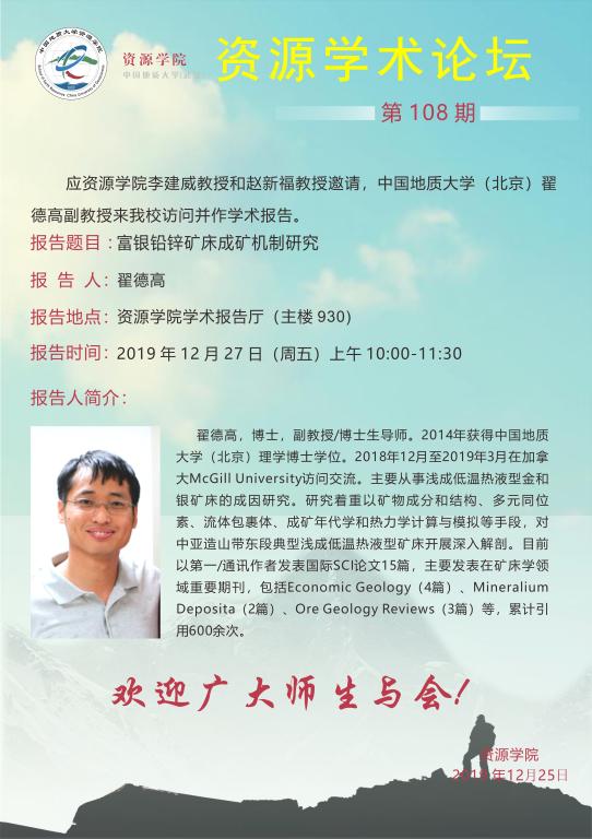 【12月27日】第108期跳高高电子论坛 :翟德高学术报告
