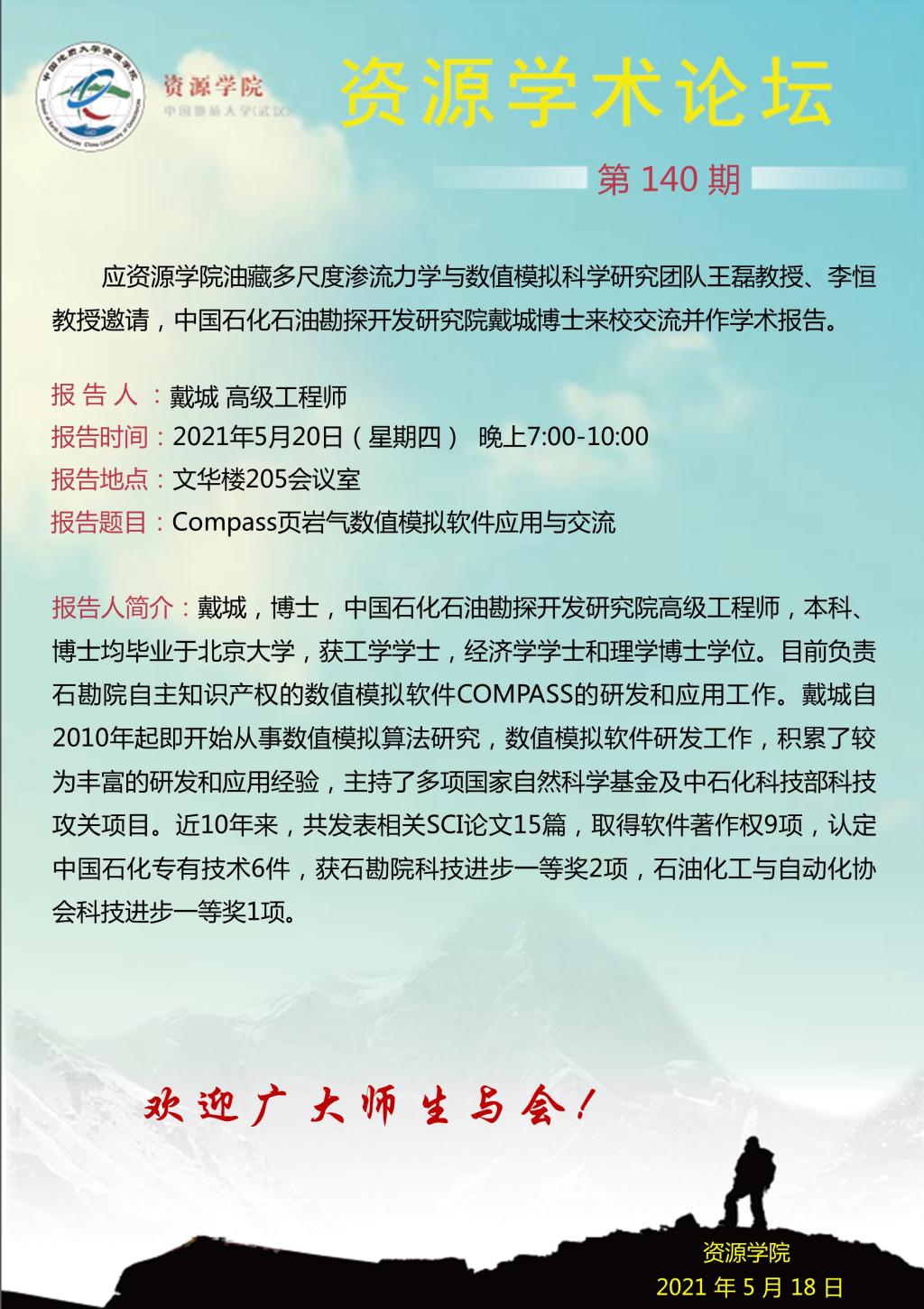 【05月20日】第140期跳高高电子论坛 :戴城学术报告
