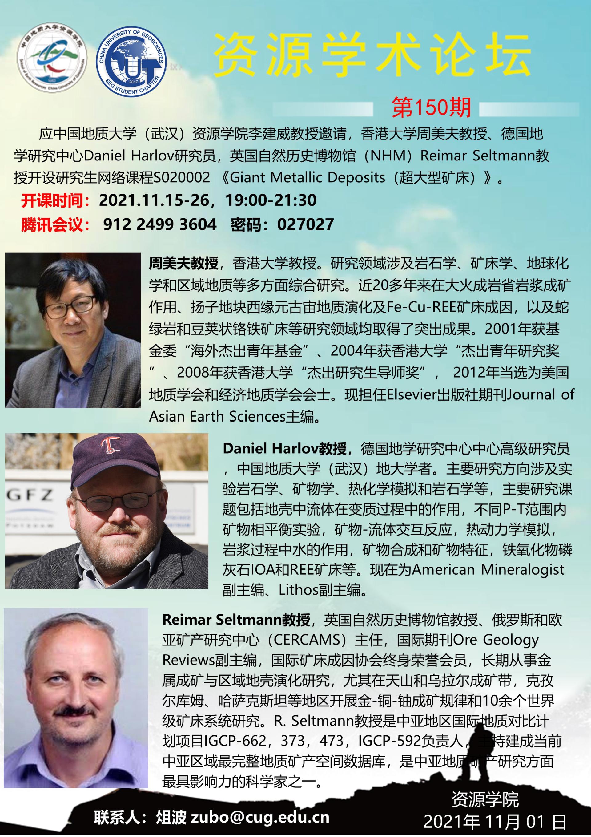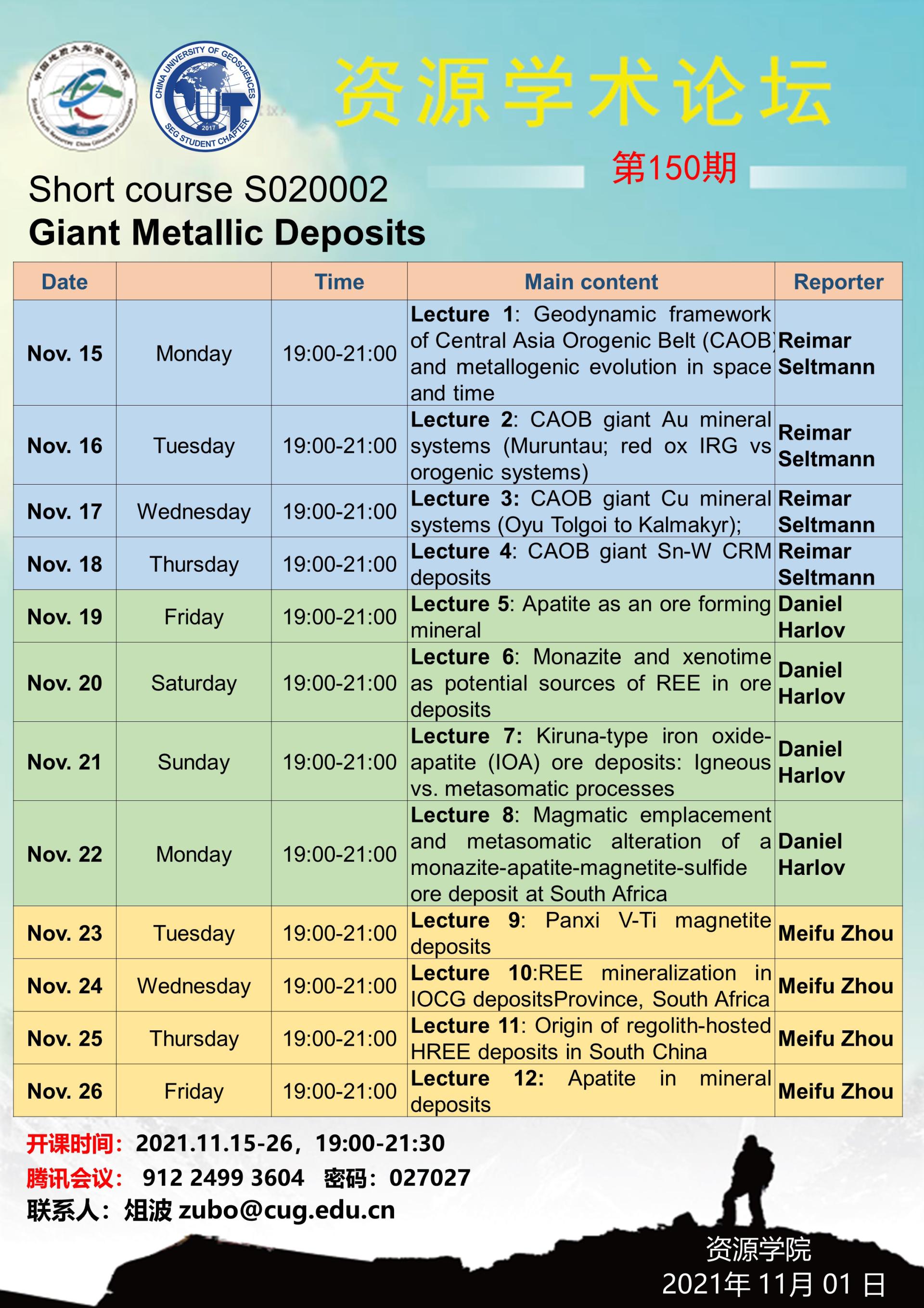 【11月15-26日】第150期跳高高电子论坛 :Giant Metallic Deposits(超大型矿床)
