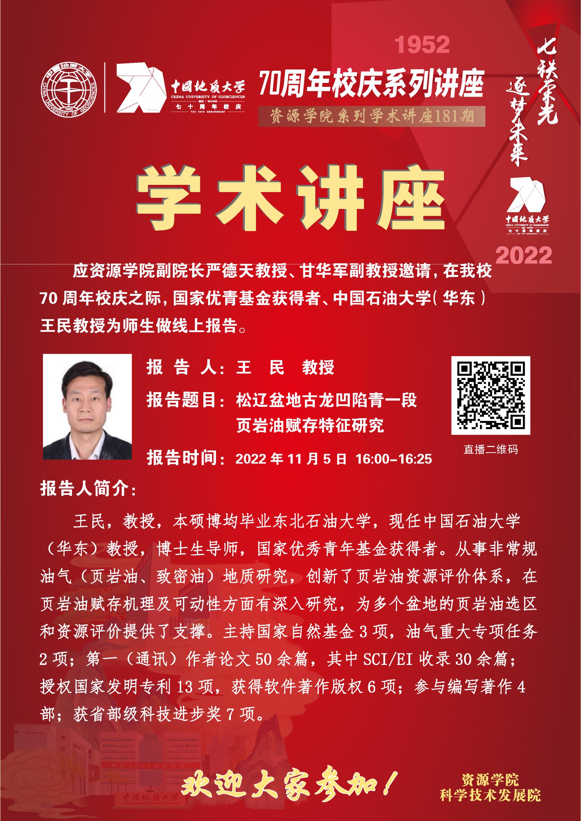 【11月5日】第181期跳高高电子论坛 :王民学术报告