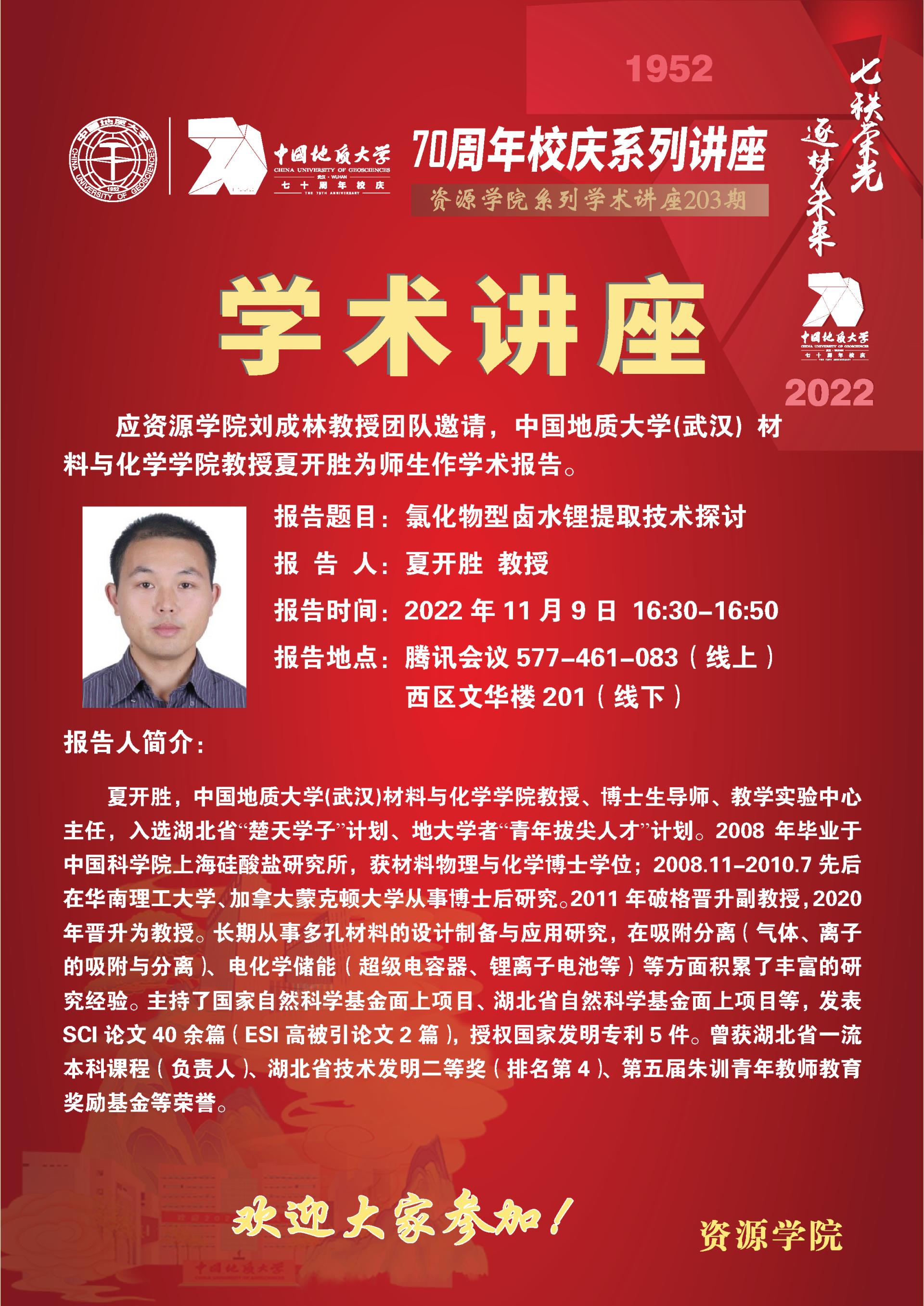 【11月9日】第203期跳高高电子论坛 :夏开胜学术报告