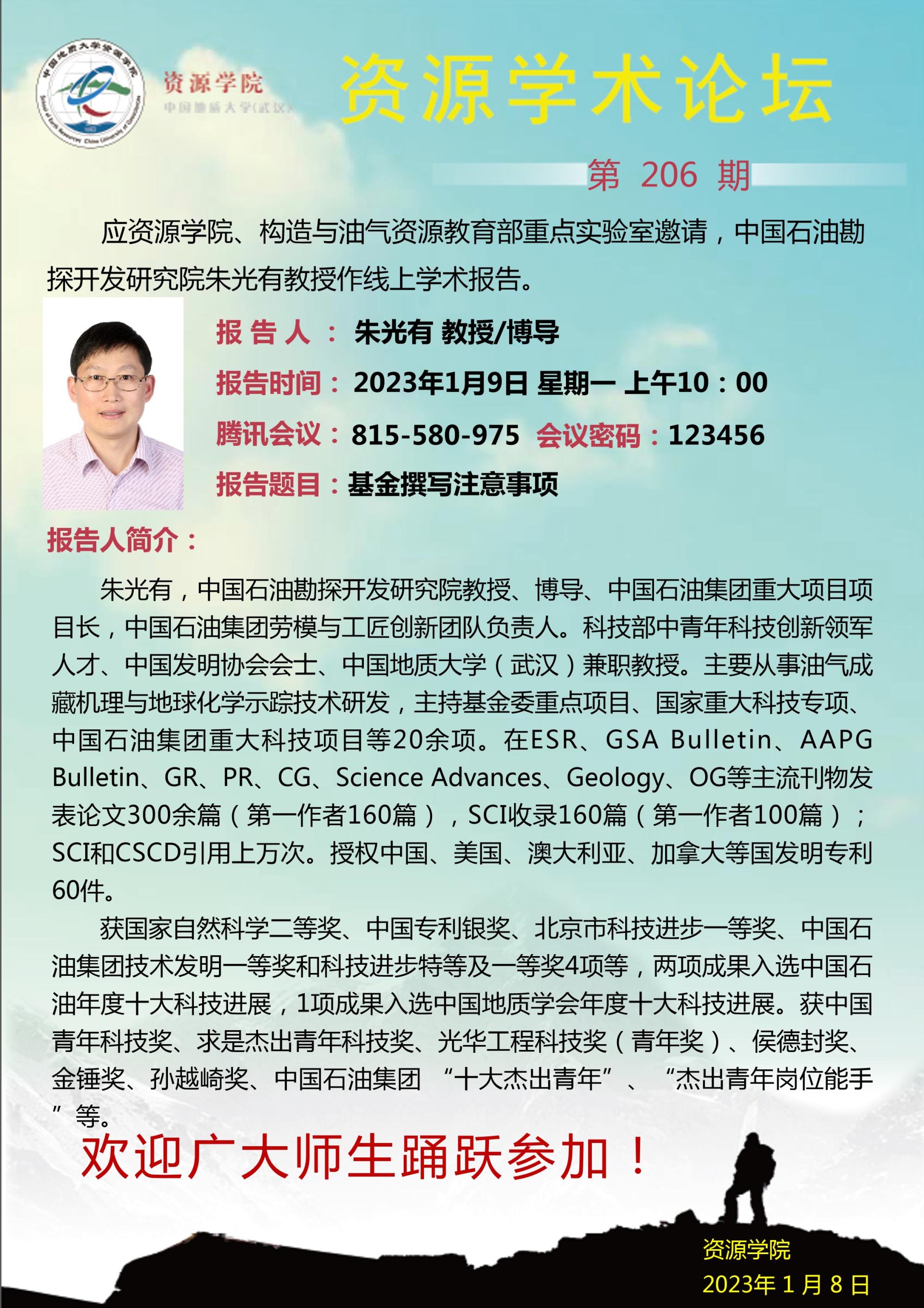 【1月9日】第206期跳高高电子论坛 :朱光有学术报告