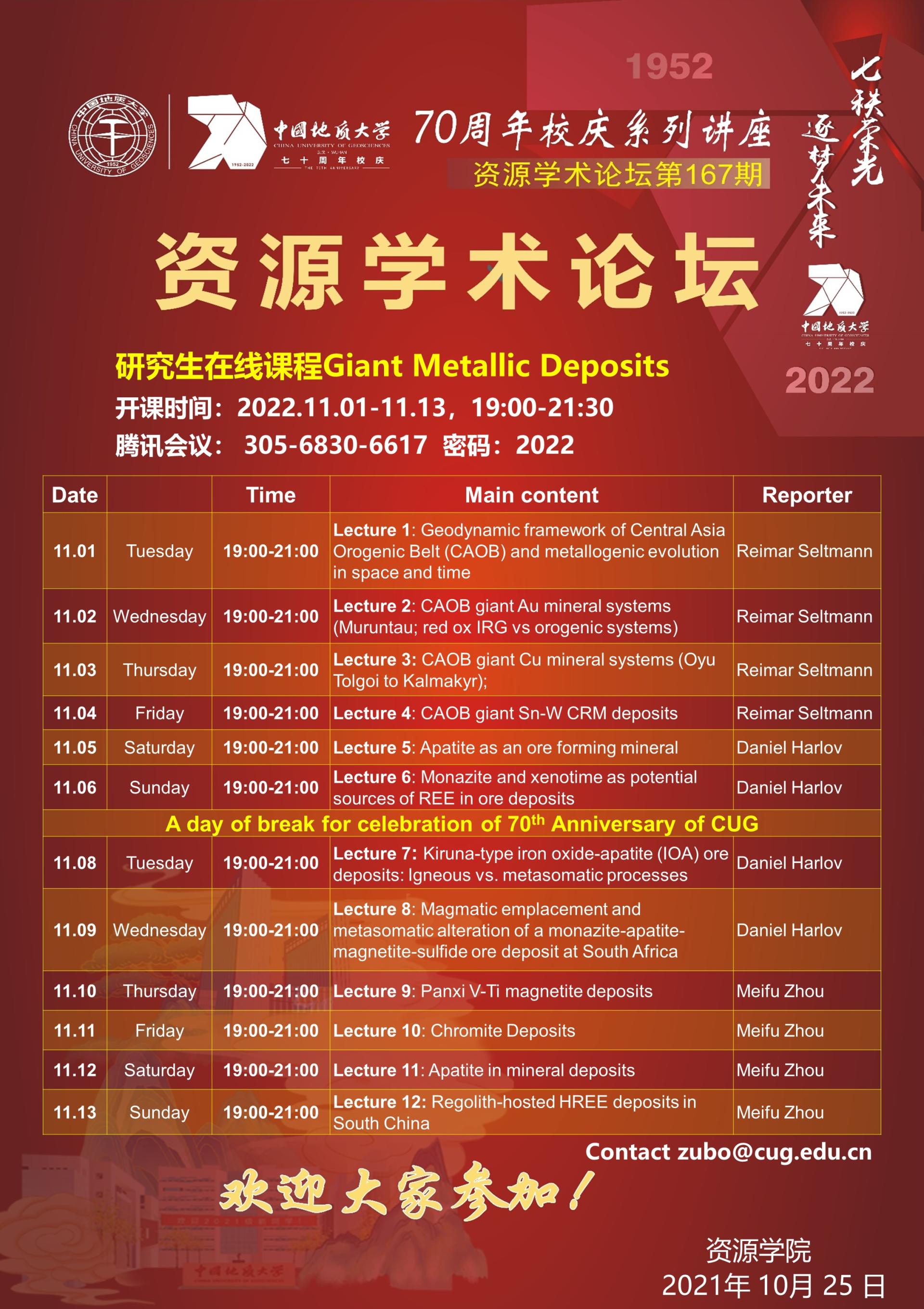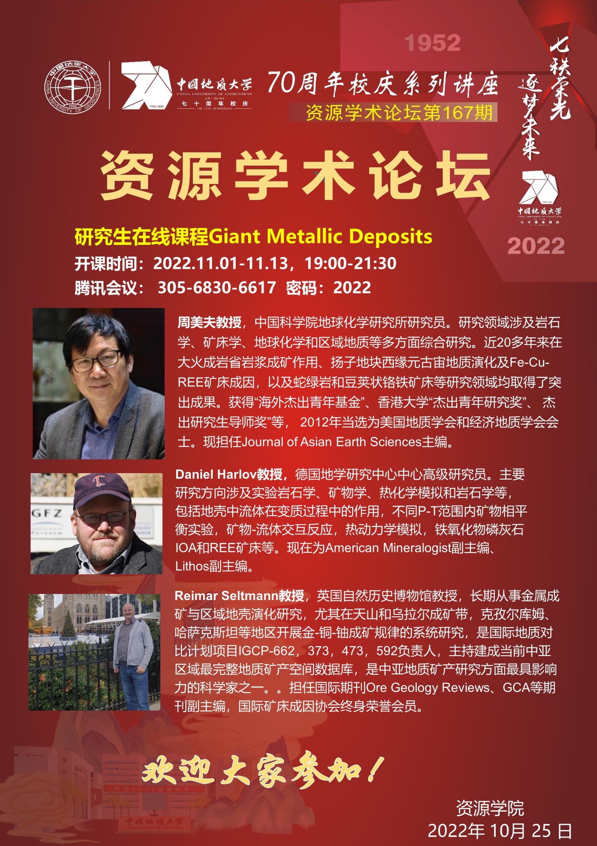 【11月1-13日】第167期跳高高电子论坛 :Giant Metallic Deposits(超大型矿床)