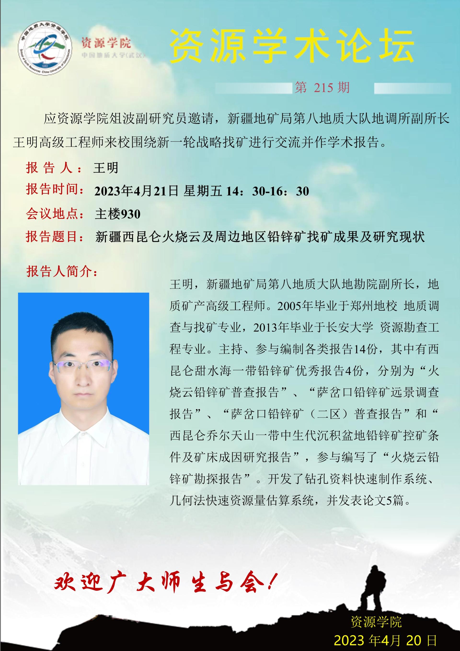 【4月21日】第215期跳高高电子论坛 :王明学术报告