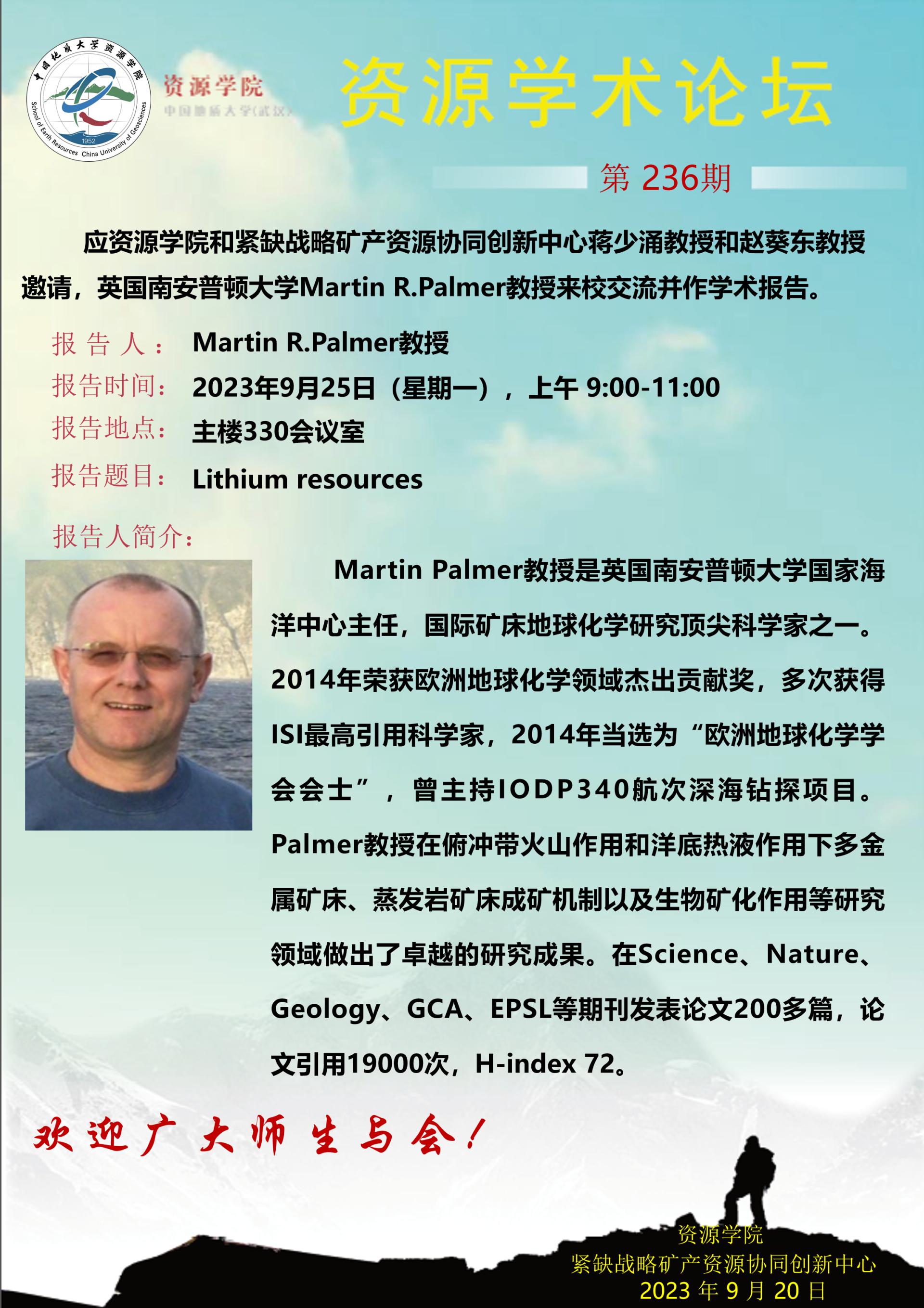 【9月25日】第236期跳高高电子论坛 :Martin R.Palmer学术报告