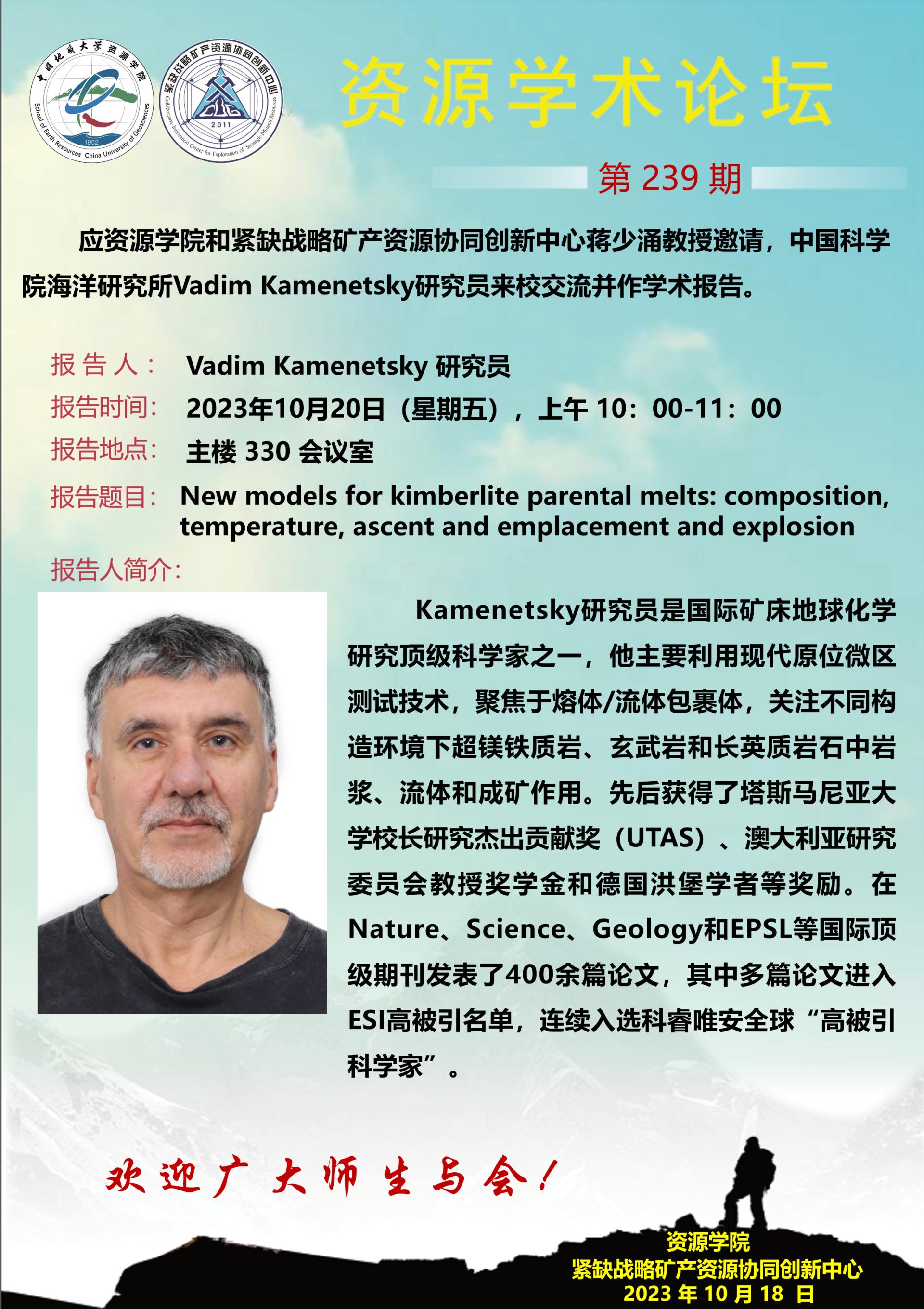 【10月20日】第239期跳高高电子论坛 :Vadim Kamenetsky学术报告