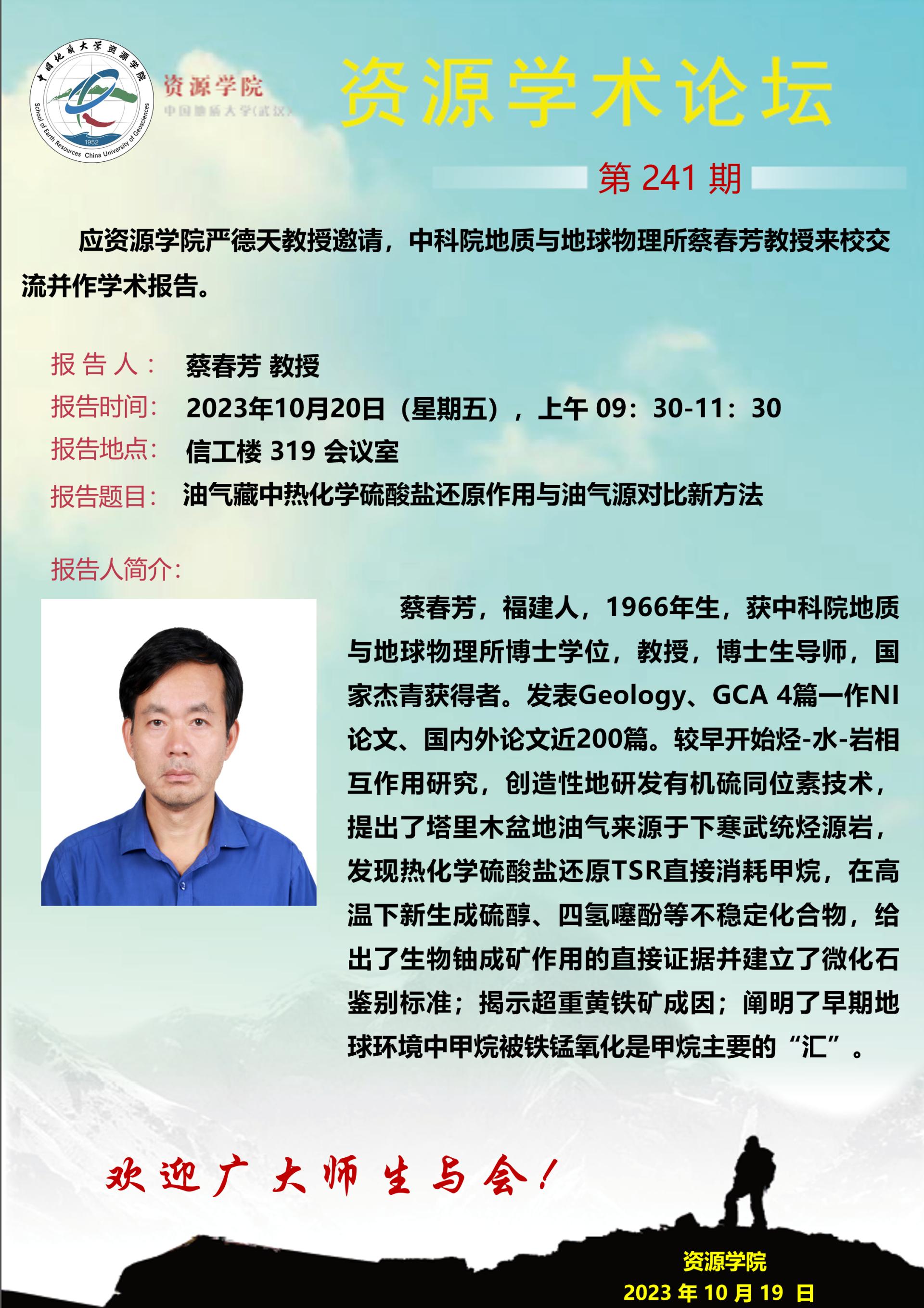 【10月20日】第241期跳高高电子论坛 :蔡春芳学术报告
