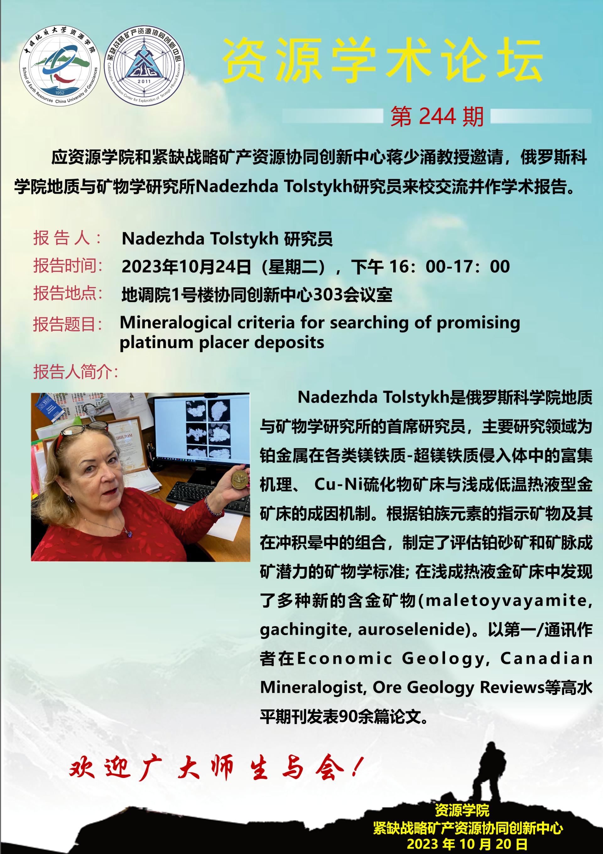 【10月24日】第244期跳高高电子论坛 :Nadezhda Tolstykh学术报告