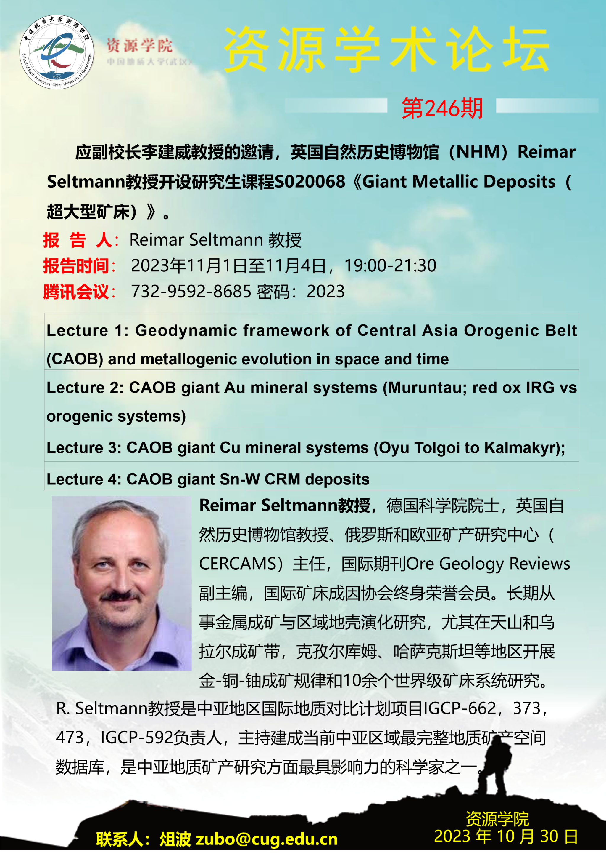 【11月1日-11月4日】第246期跳高高电子论坛 :Reimar Seltmann学术报告