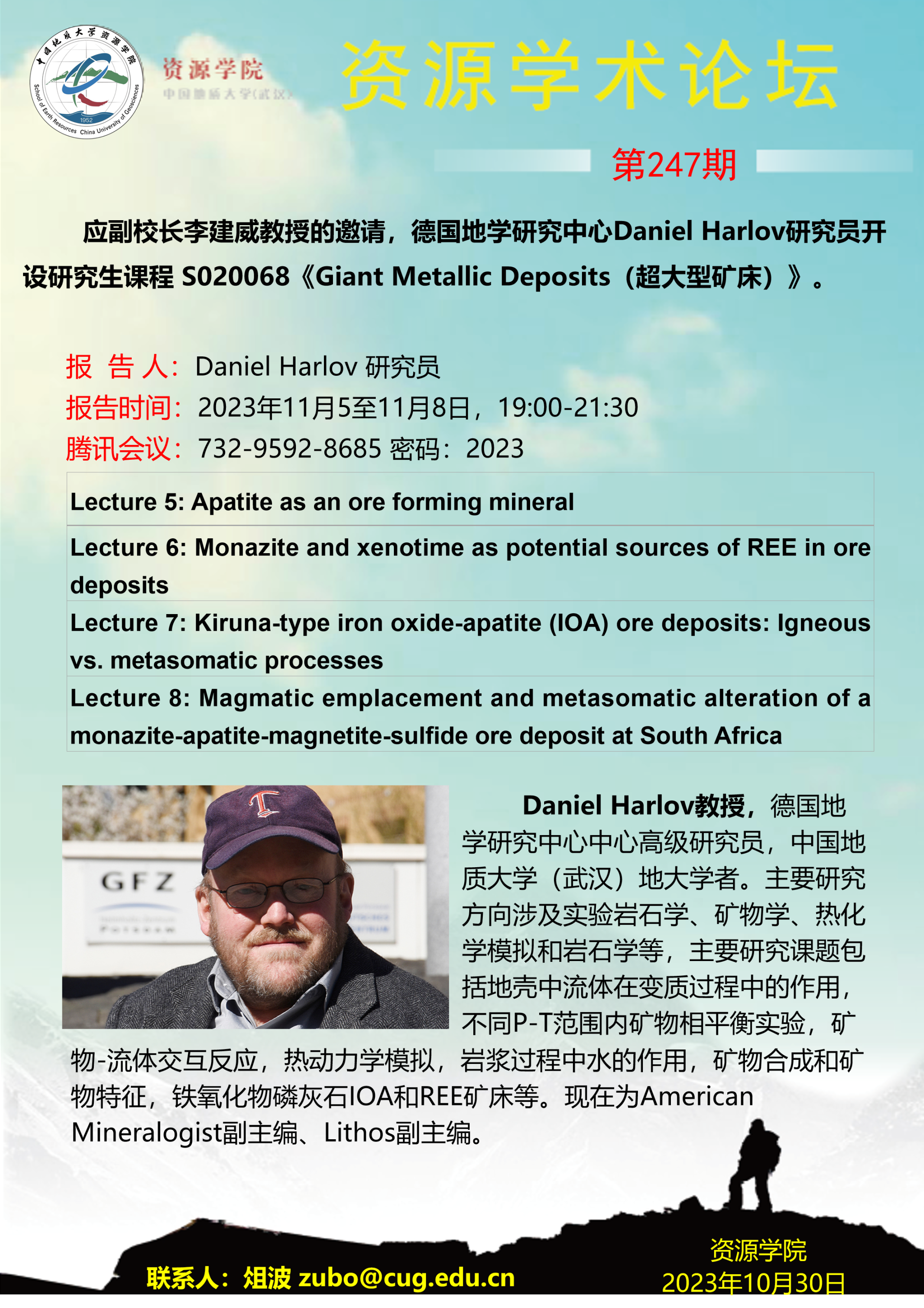 【11月5日-11月8日】第247期跳高高电子论坛 :Daniel Harlov学术报告