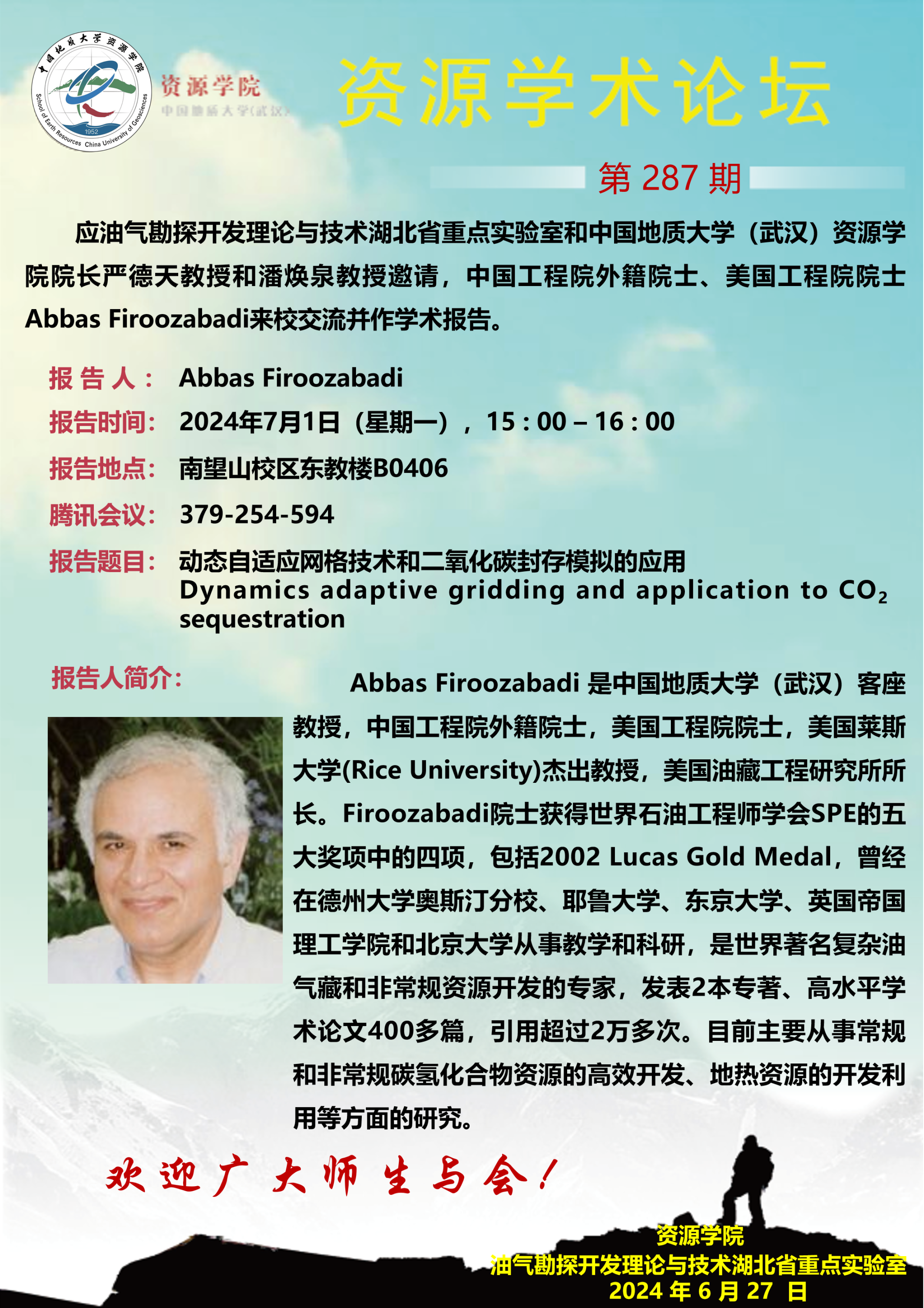【7月1日】第287期跳高高电子论坛 :Abbas Firoozabadi学术报告
