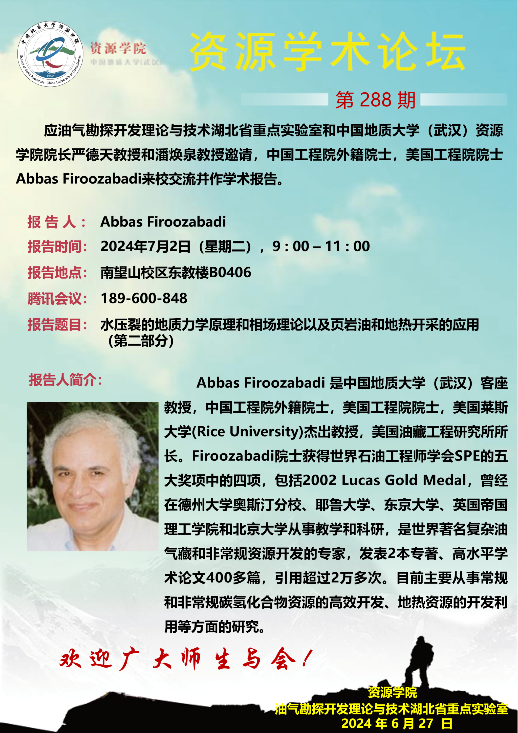 【7月2日】第288期跳高高电子论坛 :Abbas Firoozabadi学术报告