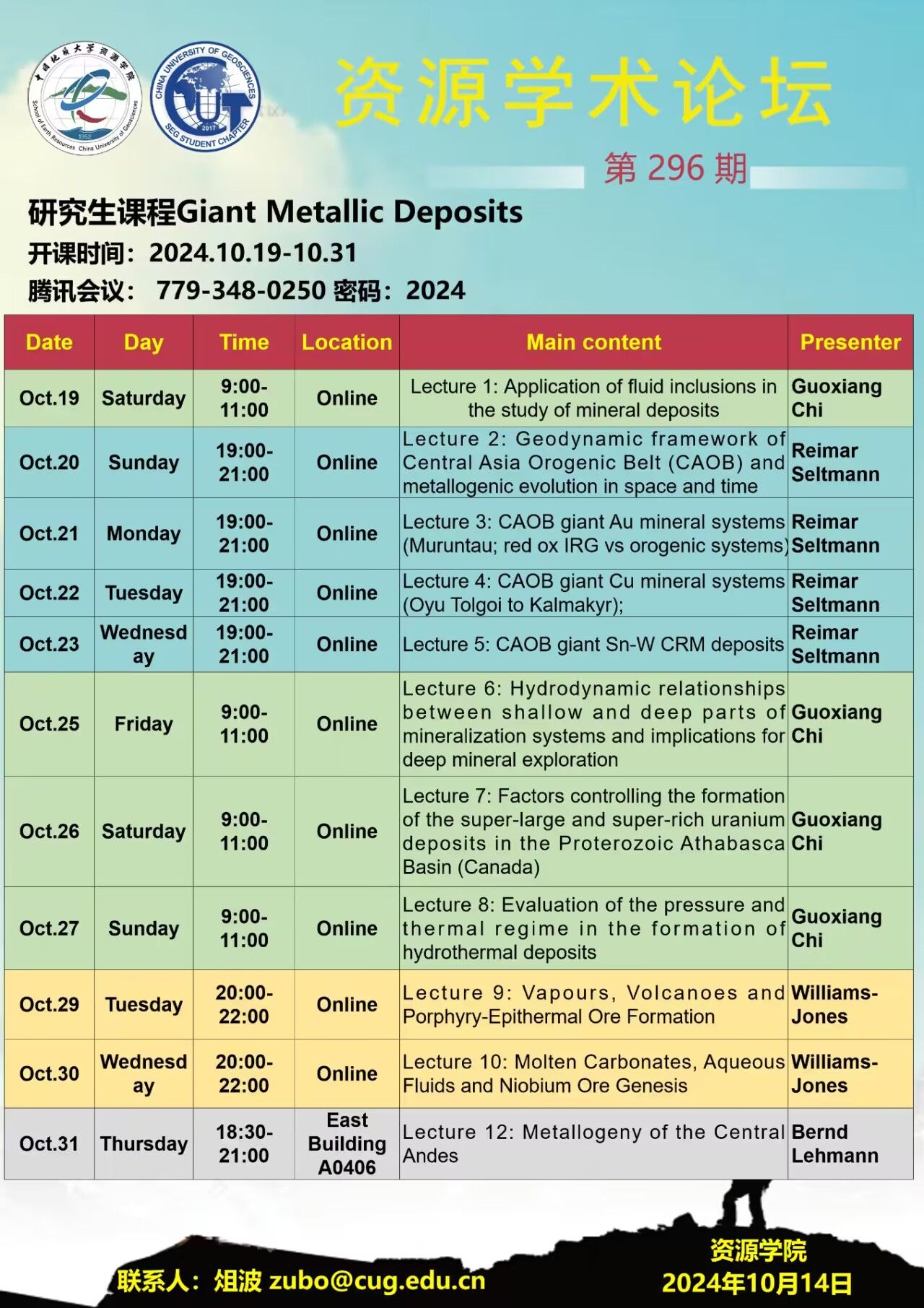 【10月19日-10月31日】第296期跳高高电子论坛 :Giant Metallic Deposits(超大型矿床)