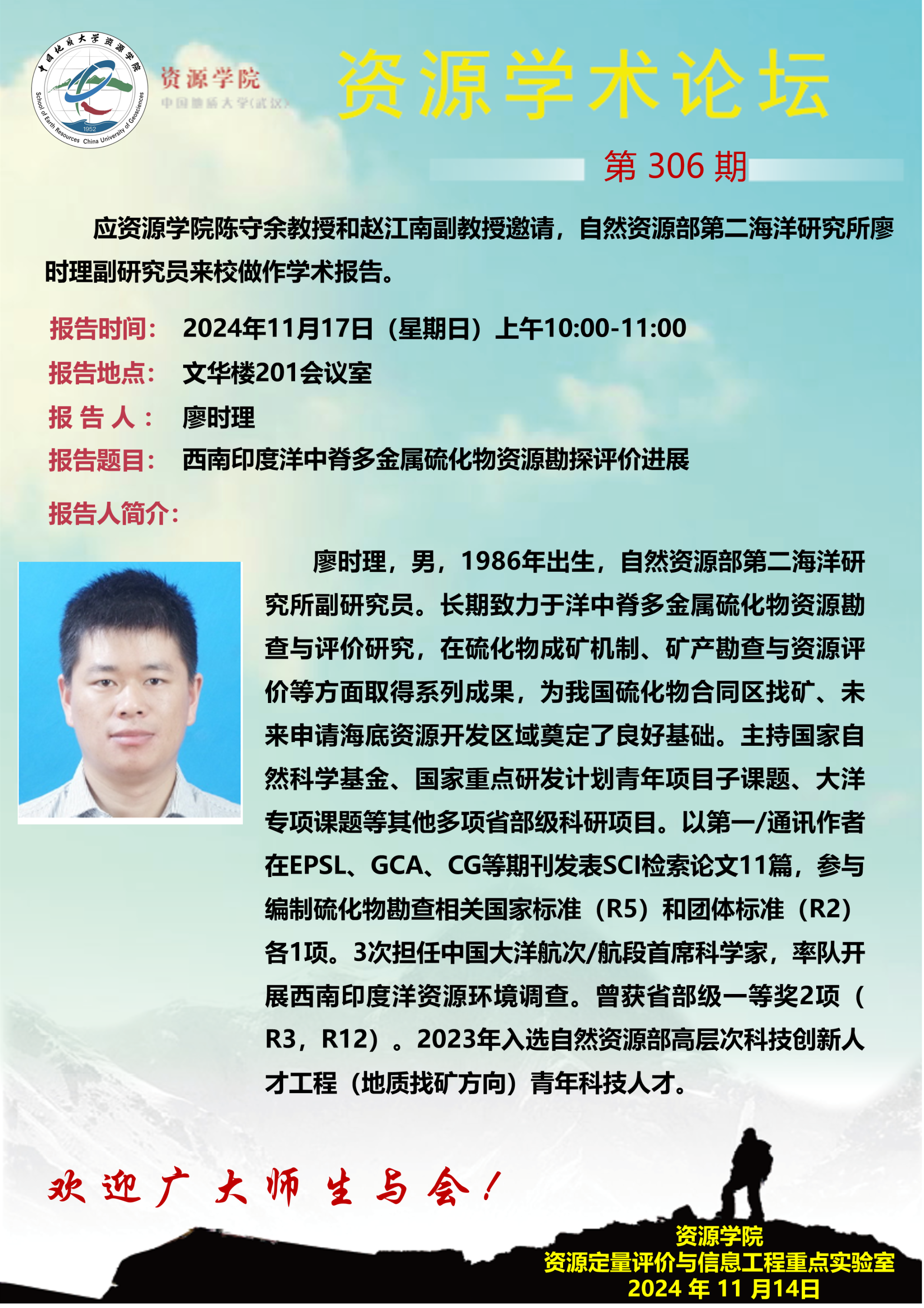 【11月17日】第306期跳高高电子论坛 :廖时理学术报告