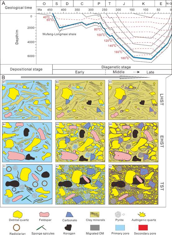 图2 五峰-龙马溪组富有机质页岩成岩演化模式