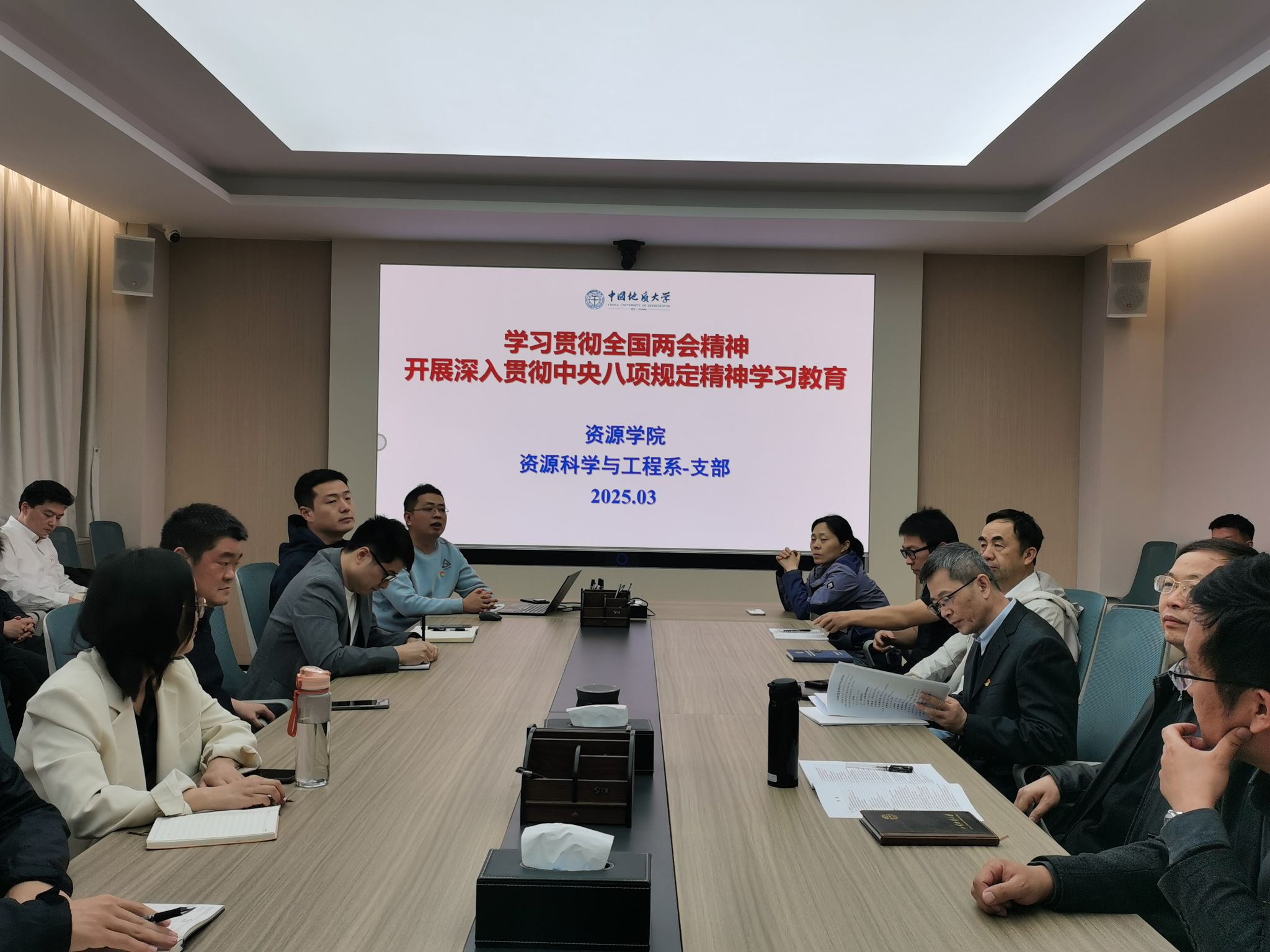 此次会议不仅是对全国两会精神、中央八项规定精神的深入学习和贯彻,更是对资源科学与工程系未来发展的一次全面规划和动员。大家一致认为,要以此次主题党日活动为契机,将中国式现代化、教育强国、中央八项规定精神内化于心、外化于行,切实转化为推动资源科学与工程系高质量发展的强大动力。