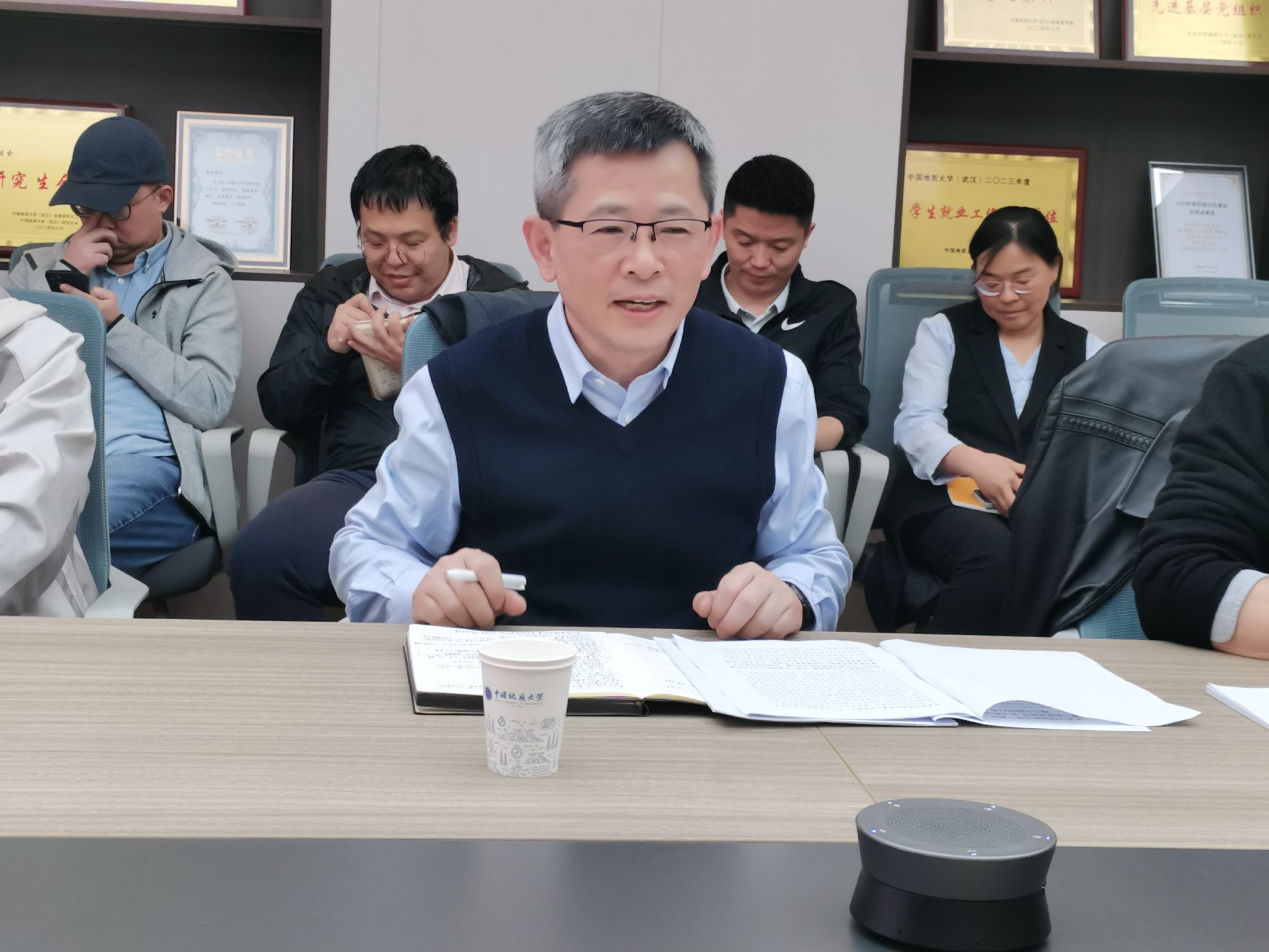 讨论环节,付乐兵介绍了支部“全身心服务、全过程育人、突出行业特色、实现高质量发展”的目标。系主任孙华山详细介绍了紫金地矿班、卓越工程师班等专业方向的发展现状和未来规划,以及深地重大专项的申报情况。他强调,要积极拓展与行业头部企业的合作,为学生争取更多的实践机会和就业渠道,推动教育链、人才链、产业链、创新链深度融合、无缝衔接。徐耀明、陈鑫、靳晓野、李艳军、吴亚飞、刘成林、赵新福、江满容、苏慧敏、杨振等教师围绕本科生教育教学、研究生招生与培养、有组织科研、深地国家科技重大专项申报、考核与评聘等内容展开讨论。