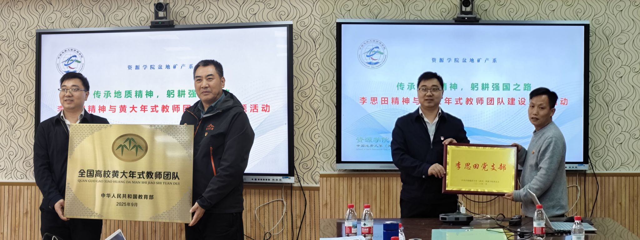 会上,汪再奇为“矿产勘查教师团队”授“全国高校黄大年式教师团队”牌,为“李思田党支部”揭牌,并向两个集体表示祝贺。汪再奇指出,李思田党支部是引领方向的精神旗帜,是推动党建与业务深度融合的重要载体。要着力营造“地质报国”的浓厚氛围,以文化传承促进学科发展和人才培养质量提升。围绕推动高质量发展,汪再奇提出三点要求:一是强化党建引领,将党支部建在科研团队上,推动党建与科研、教学深度融合;二是弘扬教育家精神,践行“为党育人、为国育才”的初心使命;三是加强团队建设,依托“双一流”学科平台,聚焦国家战略需求,产出更多标志性成果。他号召全体党员教师讲公心、重奉献,充分发挥先锋模范作用,在新时代地质事业中勇担使命。
