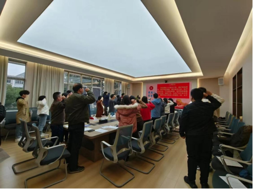 全体参会党员重温入党誓词,白文浩同志领学《中国共产党章程》党的组织制度中“党的民主集中制的基本原则”相关内容。吕帅锋同志领学了习近平总书记在中共中央政治局第九次集体学习时的重要讲话精神、刚颁布的《中华人民共和国爱国主义教育法》、习近平总书记在2023年世界互联网大会乌镇峰会开幕式上发表的重要讲话精神、习近平总书记关于生态文明建设的重要文章、跳高高电子