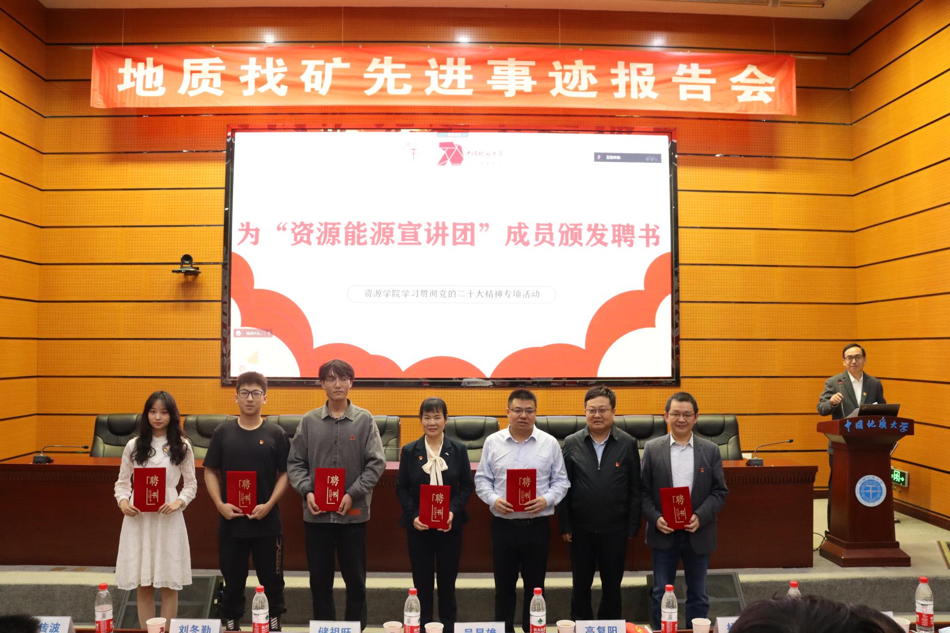 高复阳为“资源能源宣讲团”师生代表颁发聘书。