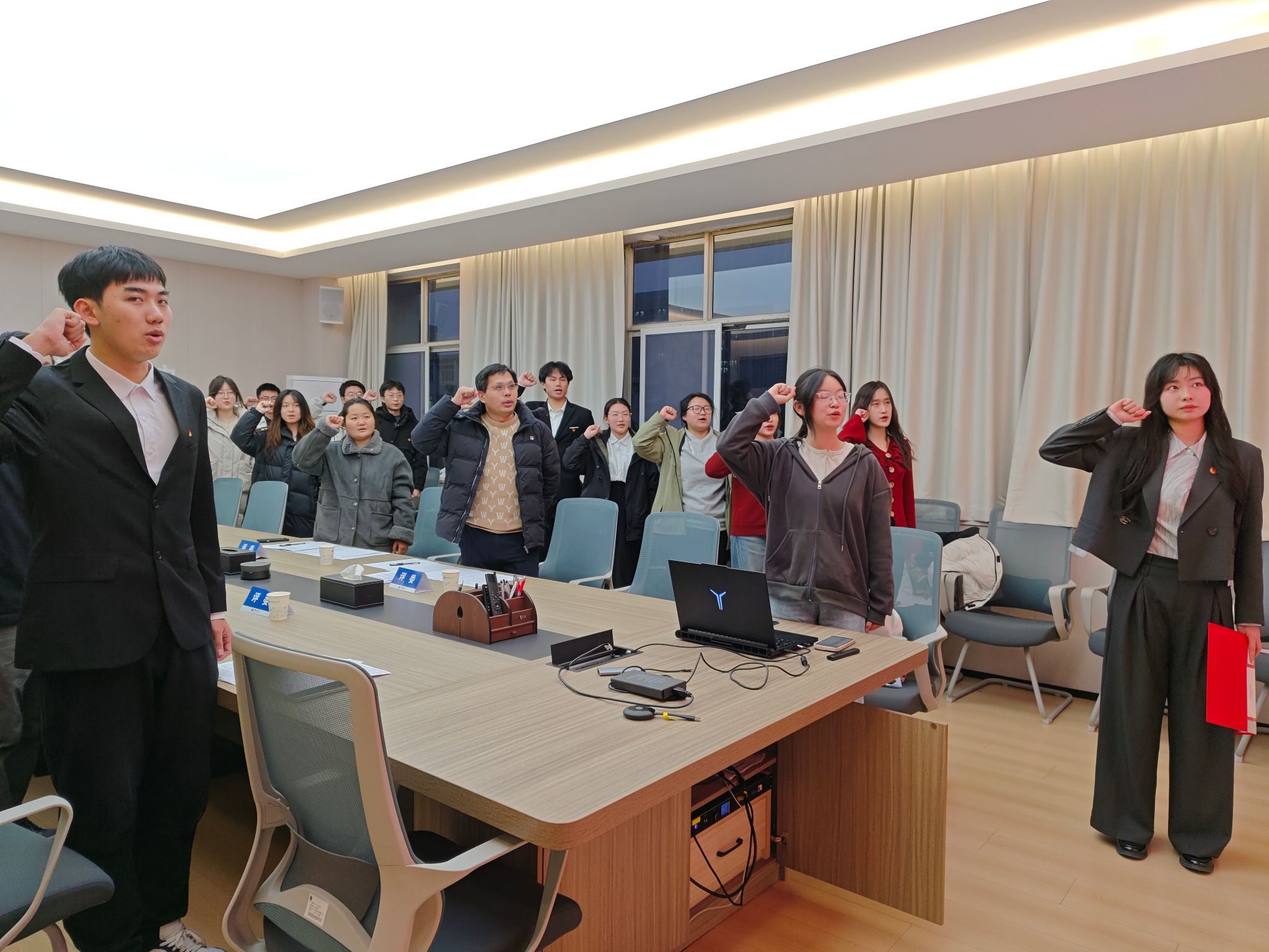全体参会人员齐唱团歌《光荣啊,中国共青团》,重温入团誓词。