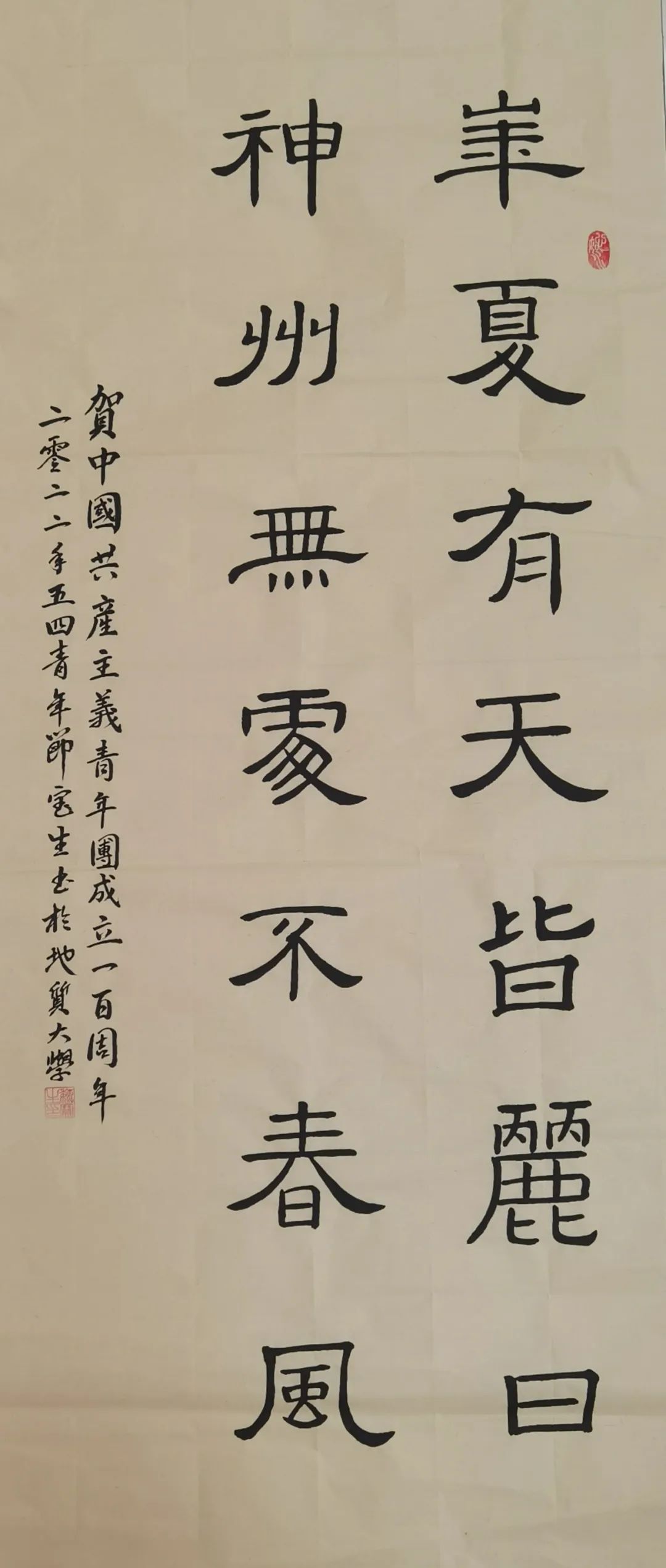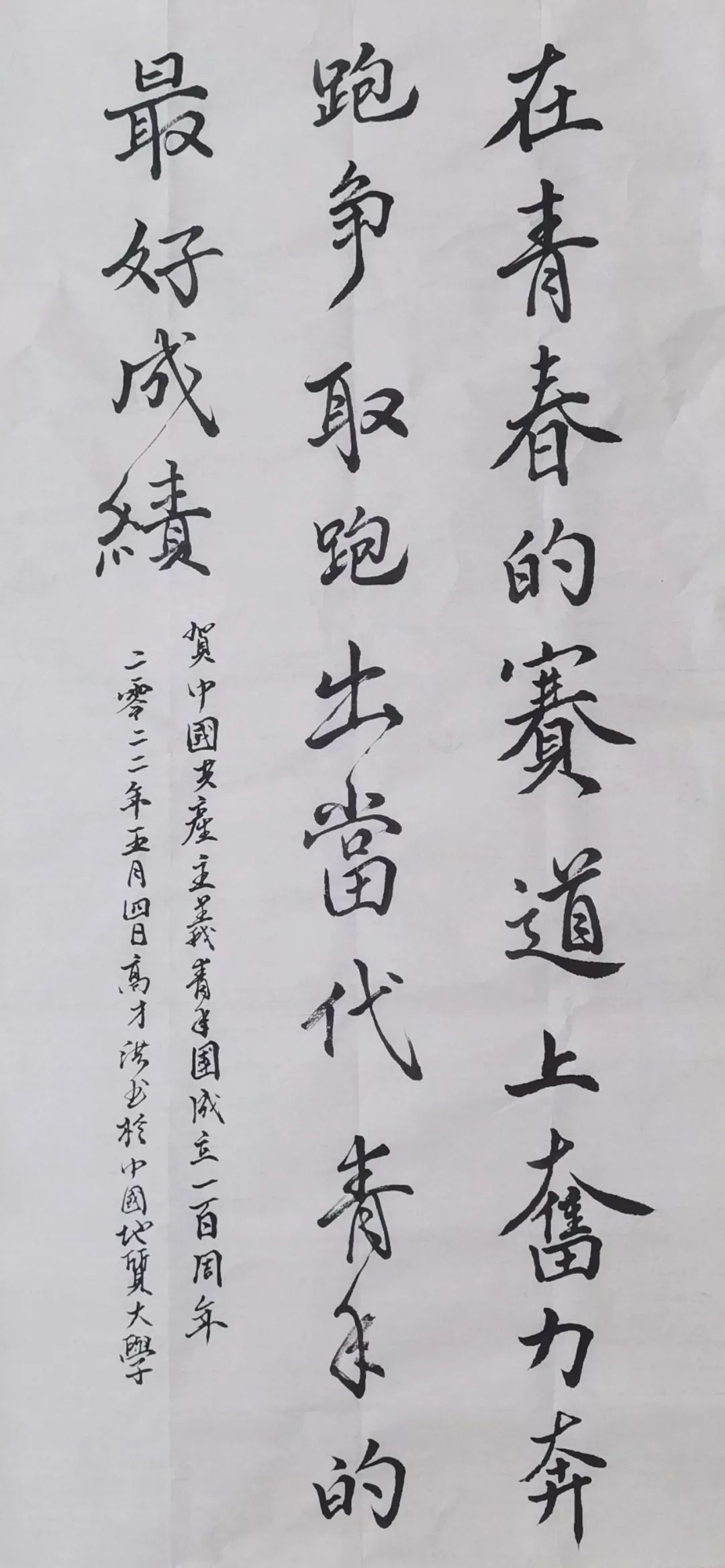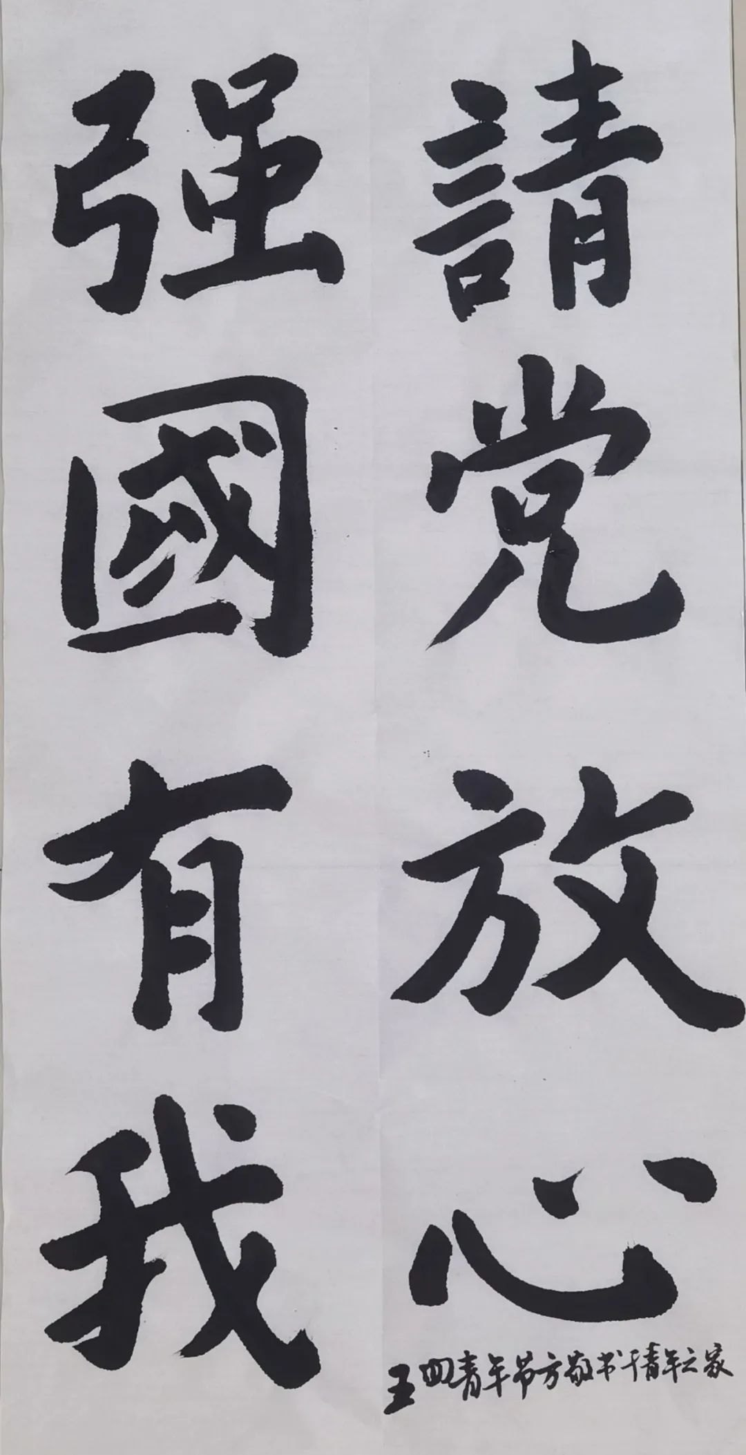 正值五四青年节之际,泼墨挥毫,挥翰临池,书写对祖国和团的美好祝愿,对未来的期盼。每个人都写出了属于青年人独有的豪迈与冲劲。“在青春的赛道上奋力奔跑,争取跑出你们这一代人的最好成绩!”习总书记在中国人民跳高高电子