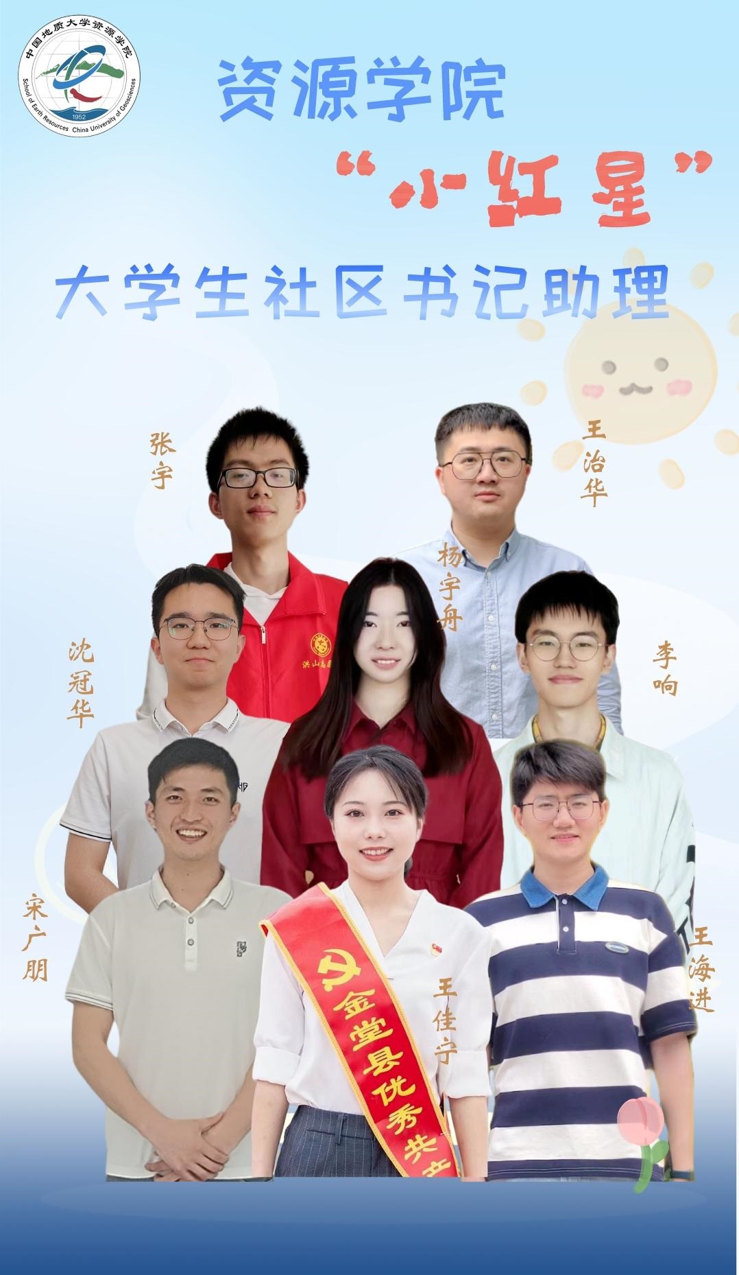 社区书记助理李响,男,中共党员,地质资源与地质工程2022级硕士研究生,导师徐元进副教授,现任地学大数据第二党支部组织委员,红星青年志愿者协会副会长。