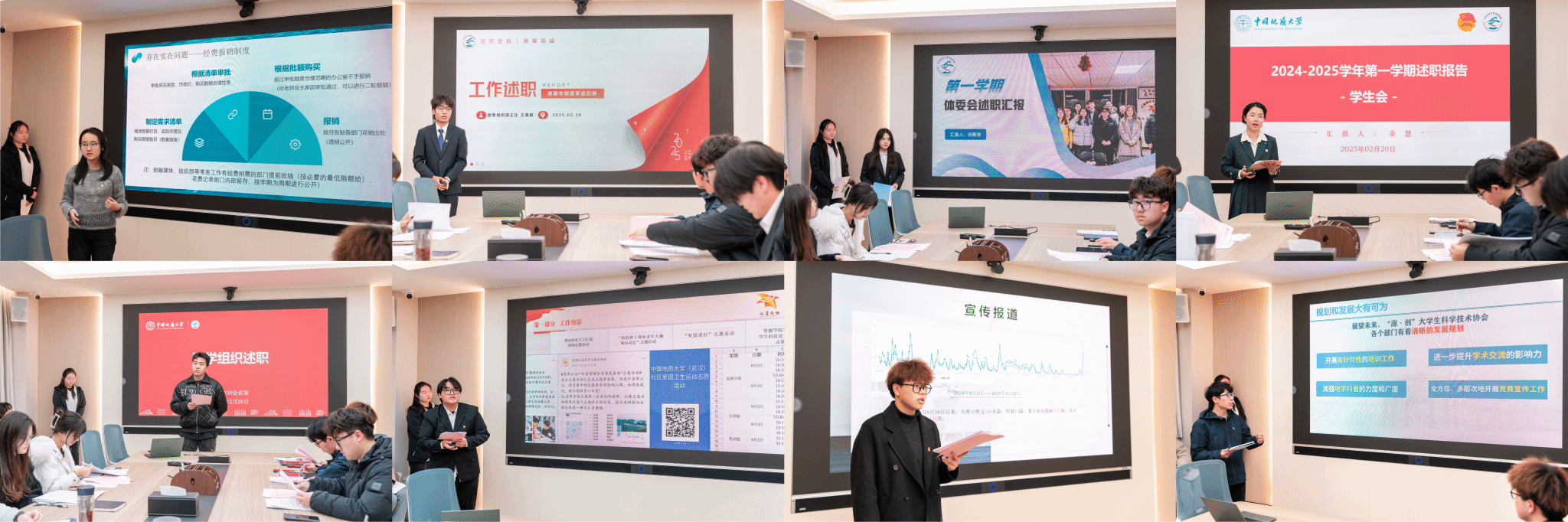 会议举行述职评优。团委直属部门、学生会、研究生会、“红星”青年志愿者协会、融跳高高电子媒体