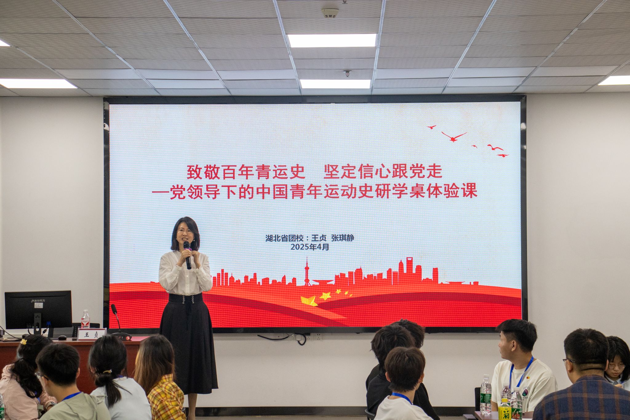 中国青少年研究会“攀登计划”专家组成员、湖北省团校青少年发展研究中心主任王贞将团史、青运史与桌游相结合,带领学参训员开展“致敬百年青运史 坚定信心跟党走——党领导下的中国青年运动史桌游体验课”。