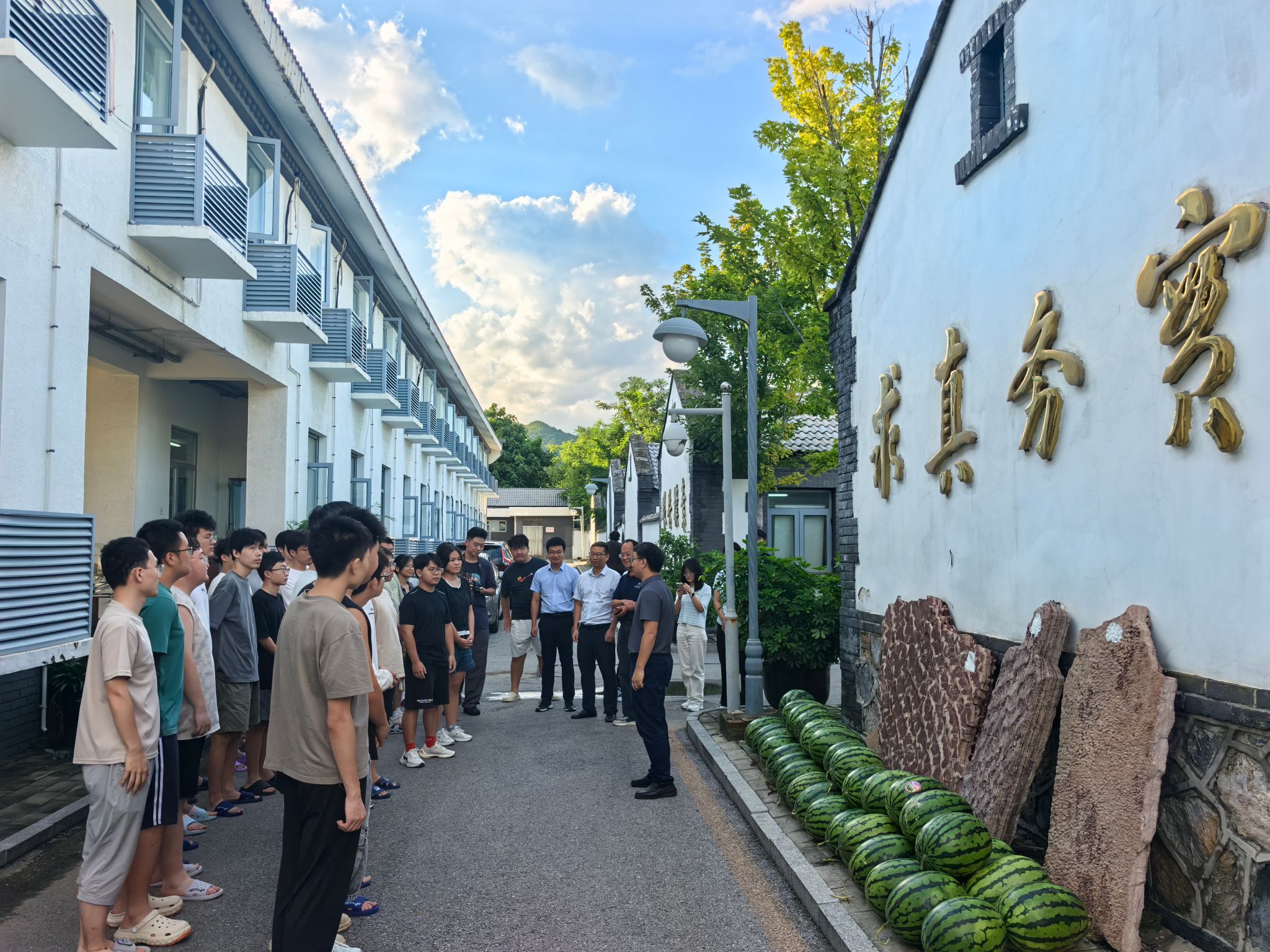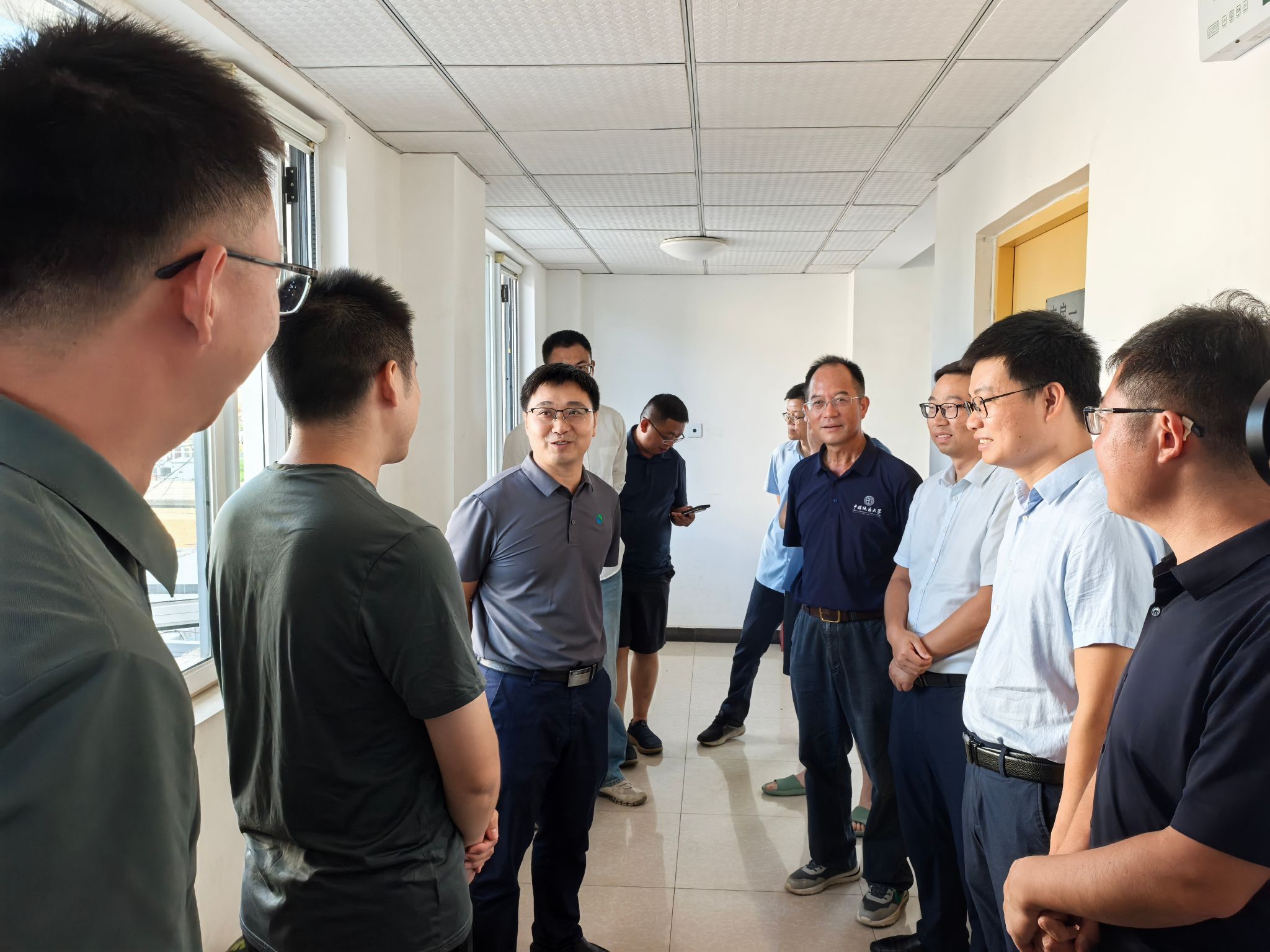 随后,汪再奇一行来到教职工宿舍看望慰问,向坚守教学一线的实习团队教师致以敬意,对教学团队在高温考验中完成备课任务、在暴雨影响下保障学生安全、高效有序推进教学任务表示肯定和感谢。他强调,野外实习是地质跳高高电子人才培养