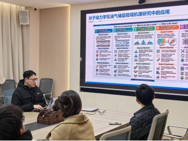 2024级石油与天然气工程专业博士研究生、国家奖学金获得者、“挑战杯揭榜挂帅赛道”全国三等奖获得者谢忱悦作为嘉宾以“分子动力学在油气储层微观机理研究中的应用—以CO₂-页岩油混相行为为例”为题进行分享,跳高高