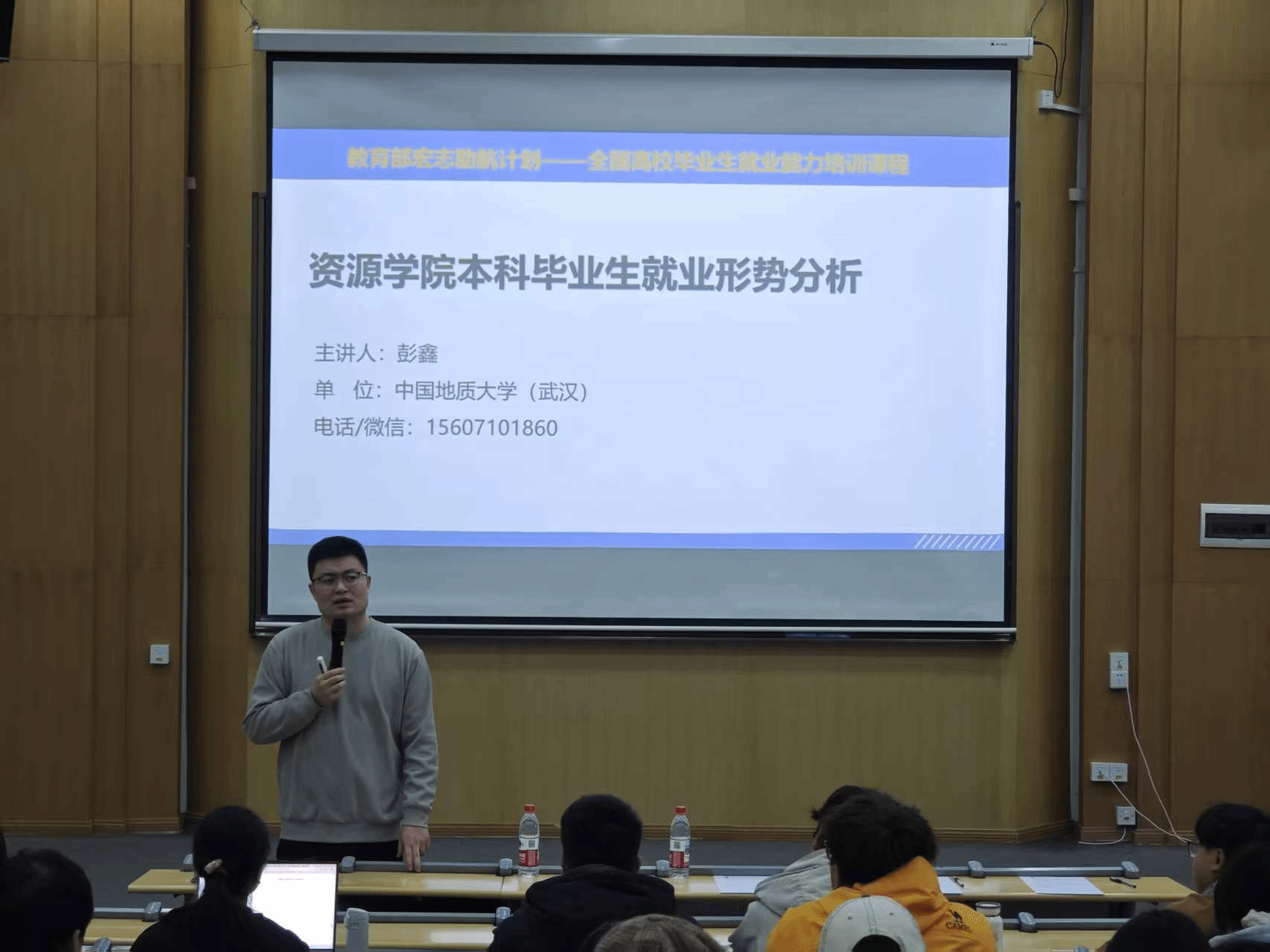 学生就业存在的结构性矛盾,引导学生做好职业规划,熟悉求职与升学政策,把握关键时间节点,积极参加招聘活动,提前打磨简历,做好求职准备工作。最后,他鼓励同学们坚定信心, 明确目标,积极行动,在服务国家战略需要中实现自身价值。