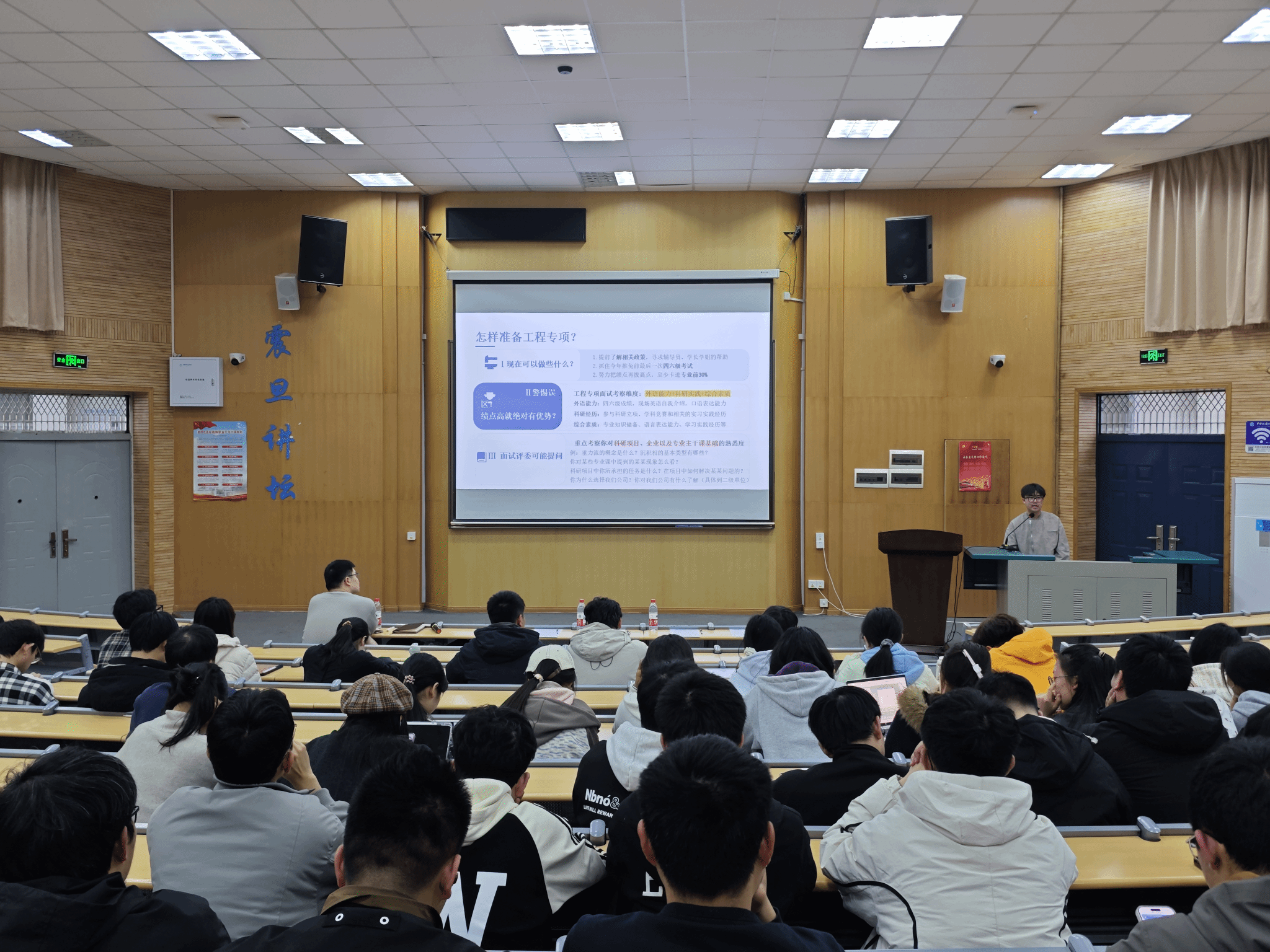 2022级中国海油工程专项入选学生唐果作推免政策宣讲及工程专项经验分享。他重点解读了推免政策的最新动态,详细介绍了推免的整体流程及各类推免类型,并结合自身经历深入讲解了工程专项联培企业的具体情况与申请要求。他从实际出发,就如何规划准备工程专项计划提供了诸多建议,为有意向参与工程专项的同学提供了宝贵的经验参考与方向指引。