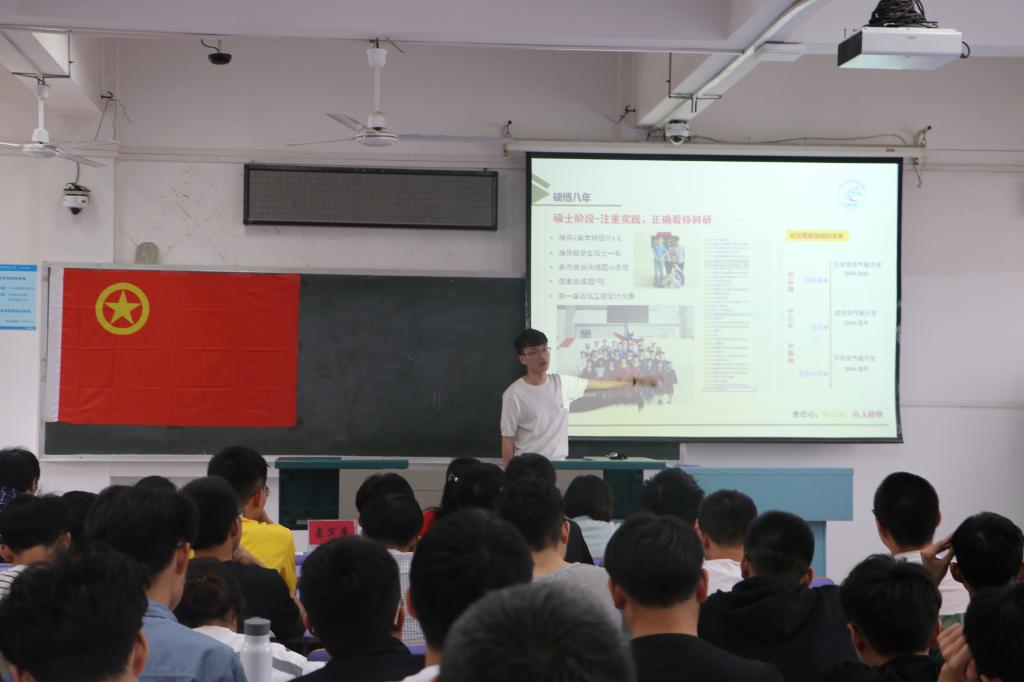 的本硕博求学之路,他从自己走进专业、走进科研、走出国门三方面讲述了他的青春奋斗故事。张琪老师结合自身经验向同学们提出了要有紧迫感、要给自己制定目标、要营造良好的宿舍氛围、要重视学术交流等建议。同时分享了他的座右铭:越努力,越幸运!