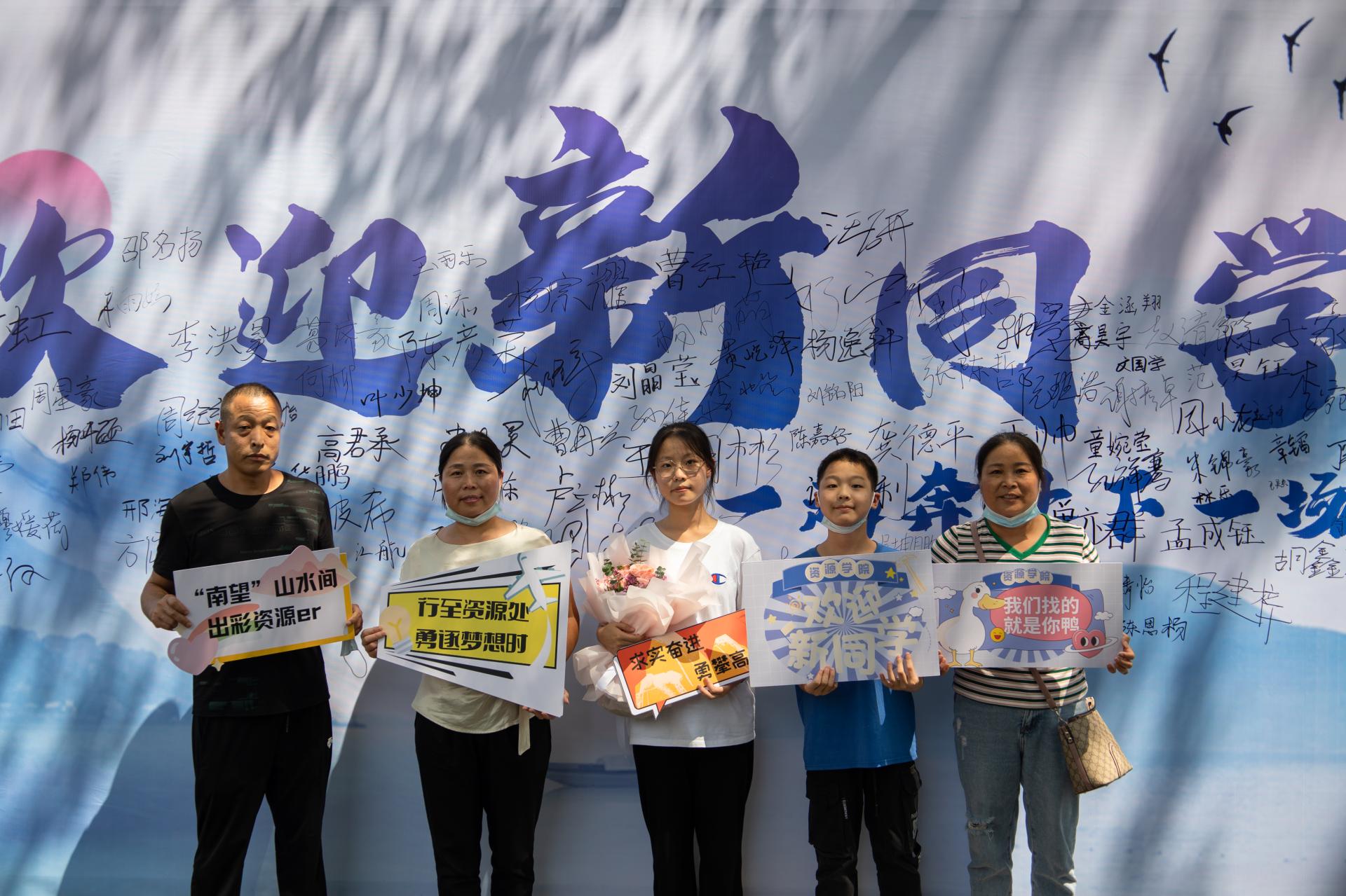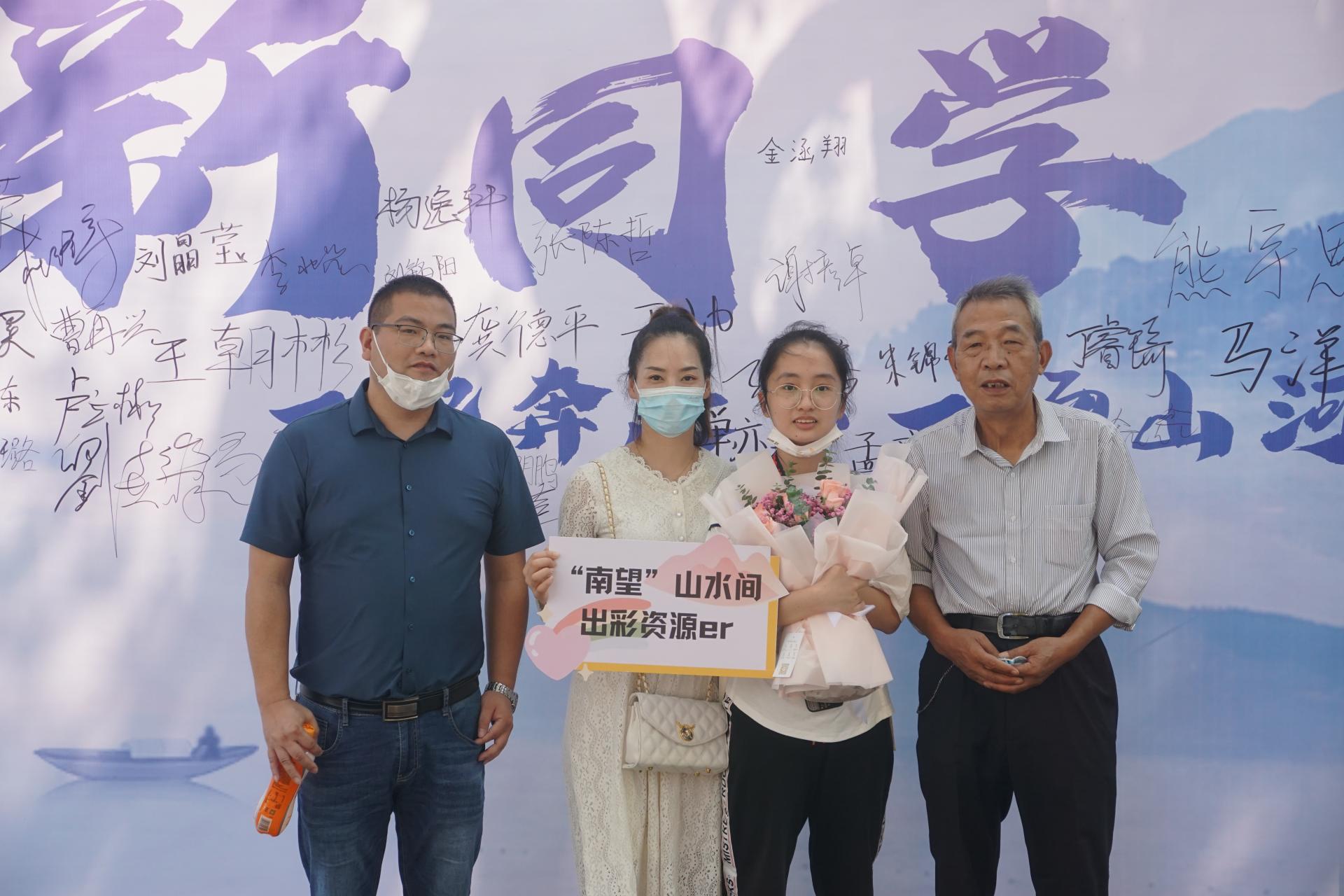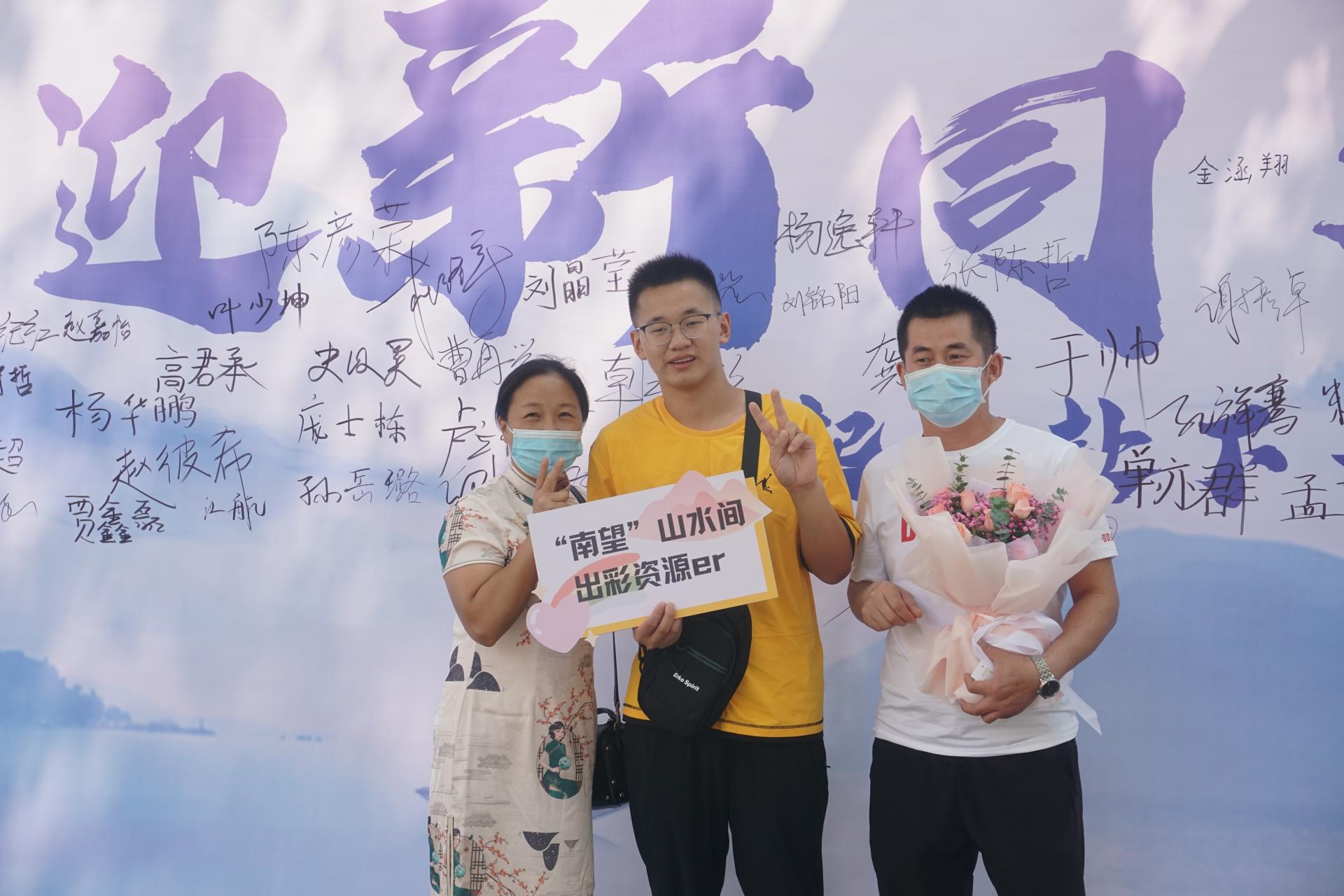 完成报道后与家人在签名墙留下了跳高高电子 里的第一张合影