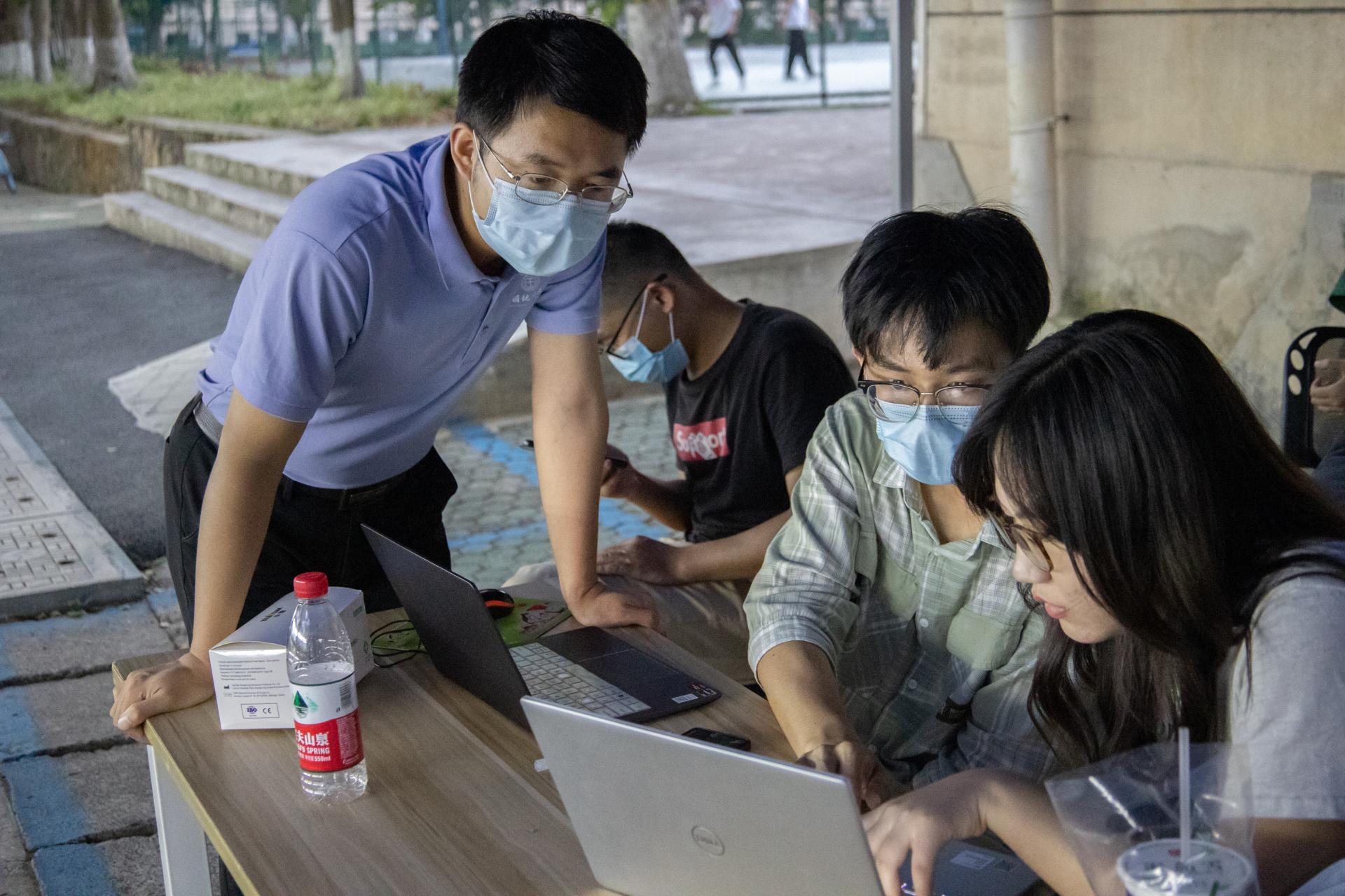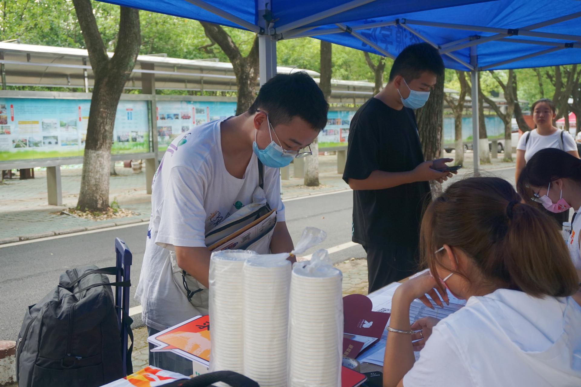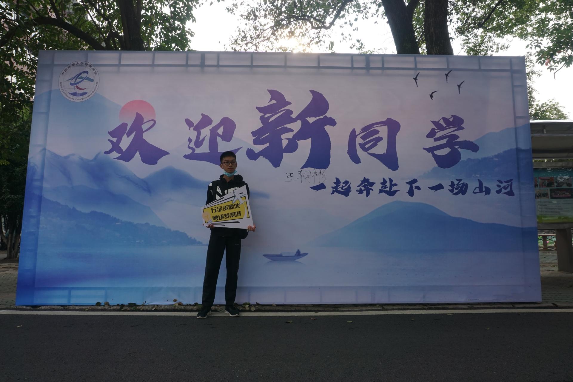 迎着朝阳,第一位同学在签名墙上留下了他的名字