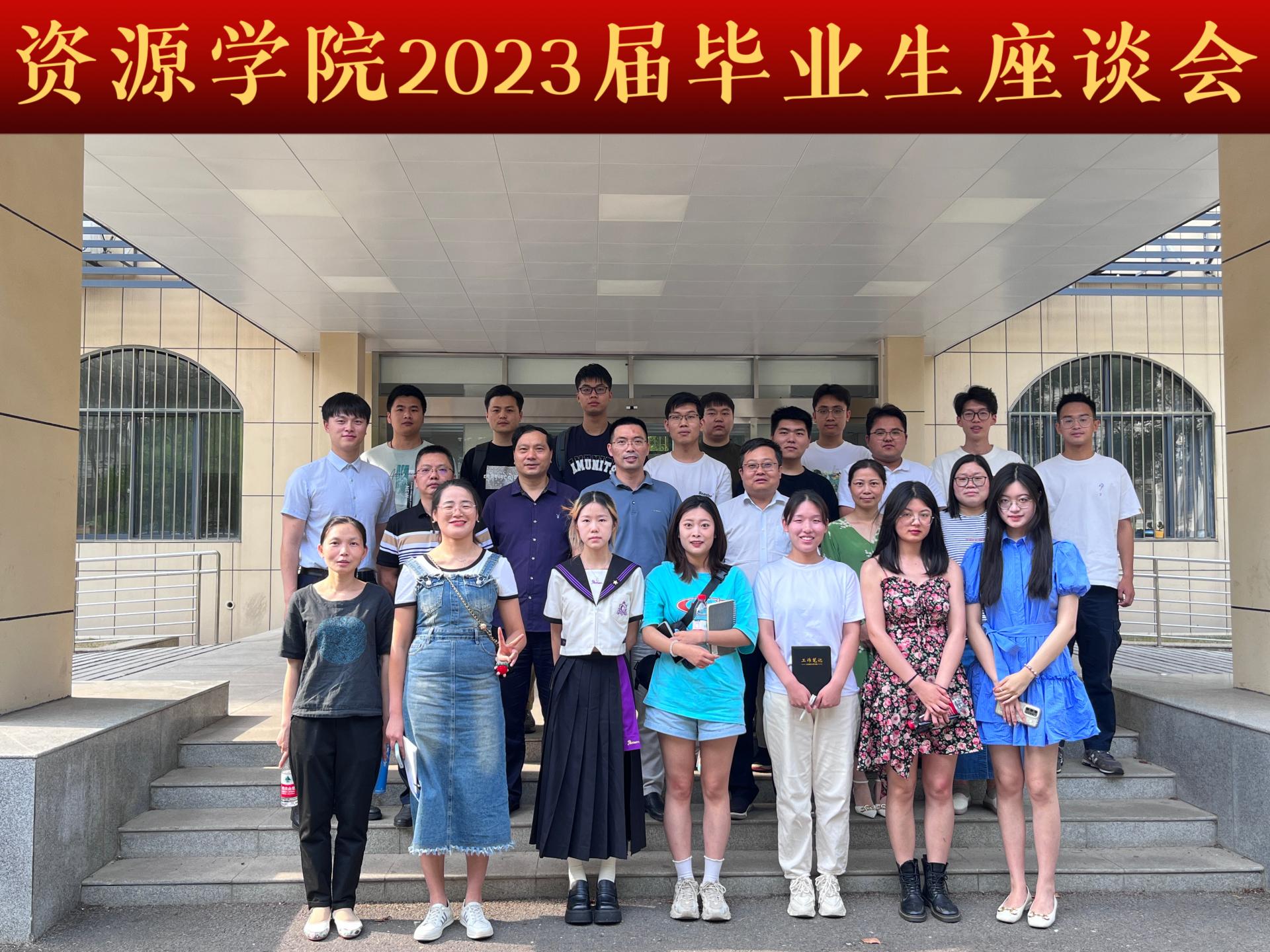 在文华楼201室举行2023届毕业生座谈会。院党委书记高复阳、院长严德天、党委副书记谭文伦,各系主任、党支部书记,班主任、辅导员,教务科、研究生科负责人与15名毕业生代表围坐一起,分享青春故事、畅叙地大时光、共话美好未来。2019级本科生辅导员刘睿主持会议。
