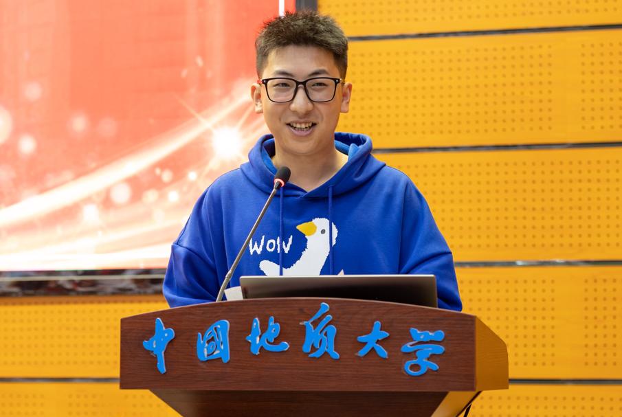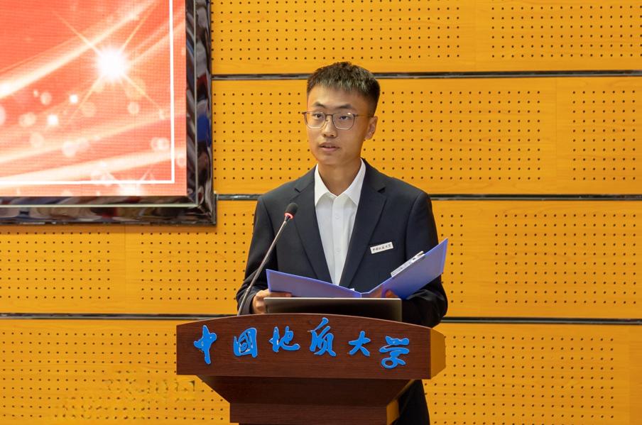 新生代表、02D236班王嘉桐同学分享了自己与地大结缘的故事,畅享了未来的跳高高电子 生活,倡议同学们立足于时代要求,求实进取,砥砺前行,主动担当服务和保障国家资源能源事业安全与发展的历史重任。