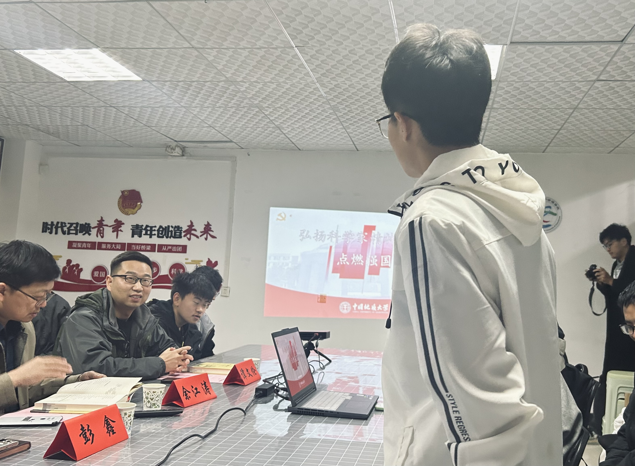 2023级资源能源五班在资源·青年之家开展“弘扬科学家精神,点燃强国复兴梦”主题团会。出版社副社长余江涛、资源跳高高电子