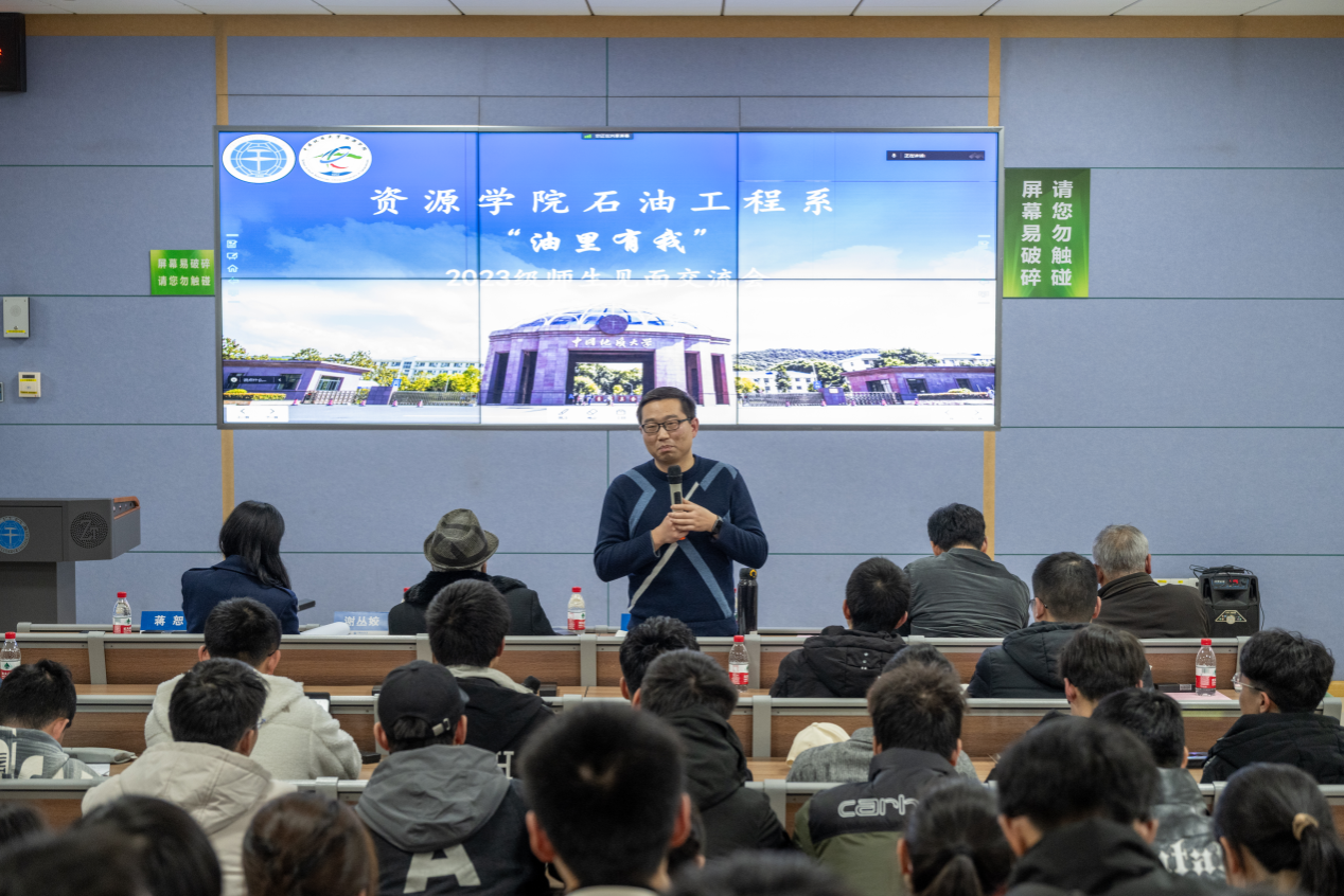 、研究方向及相关成果,深入介绍了石油工程的行业动态和就业前景,祝愿同学们在学习和生活中取得丰硕的成果。期间,师生进行了热烈的交流。