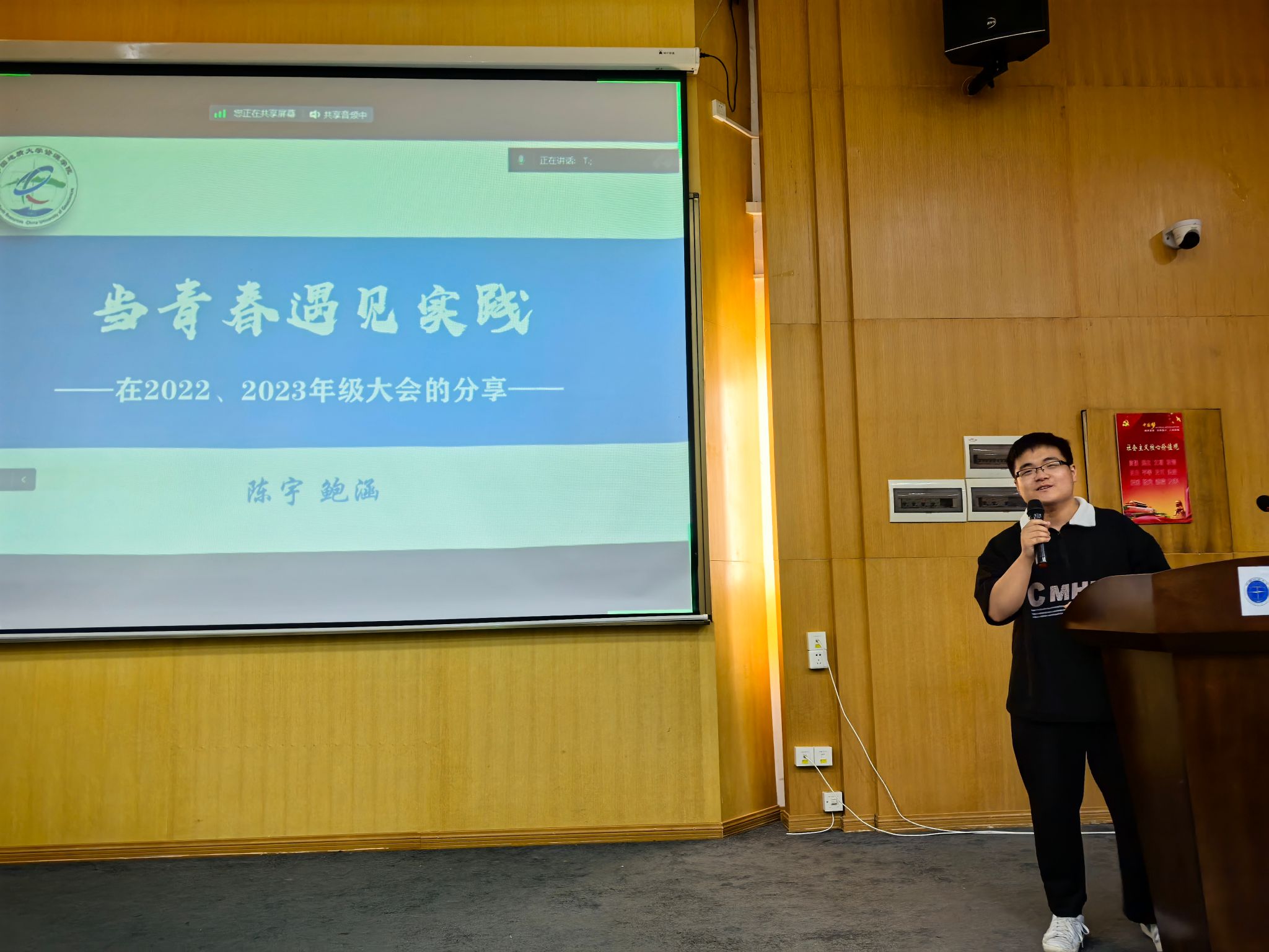 成长主题分享。他从学习、生活、保研、毕业四个方面出发,回顾了自身成长经历,鼓励大家要积极争取属于自己的机会和未来,在探索中不断深化自我认识、明确发展方向、厘清目标规划。