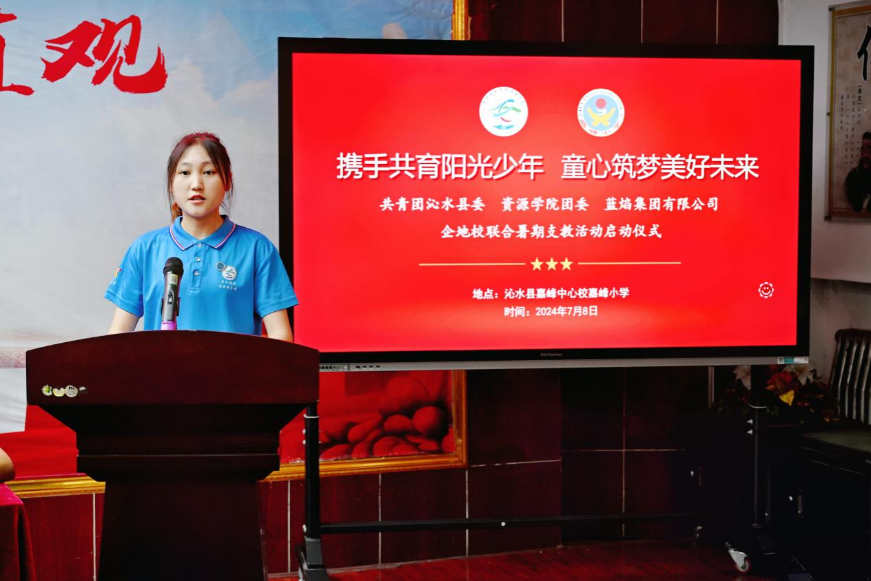 团委和蓝焰集团有限公司、共青团沁水县委联合举办的“携手共育阳光少年 童心筑梦美好未来”暑期支教活动在沁水县嘉峰小学启动。共青团沁水县委书记王雄,跳高高电子