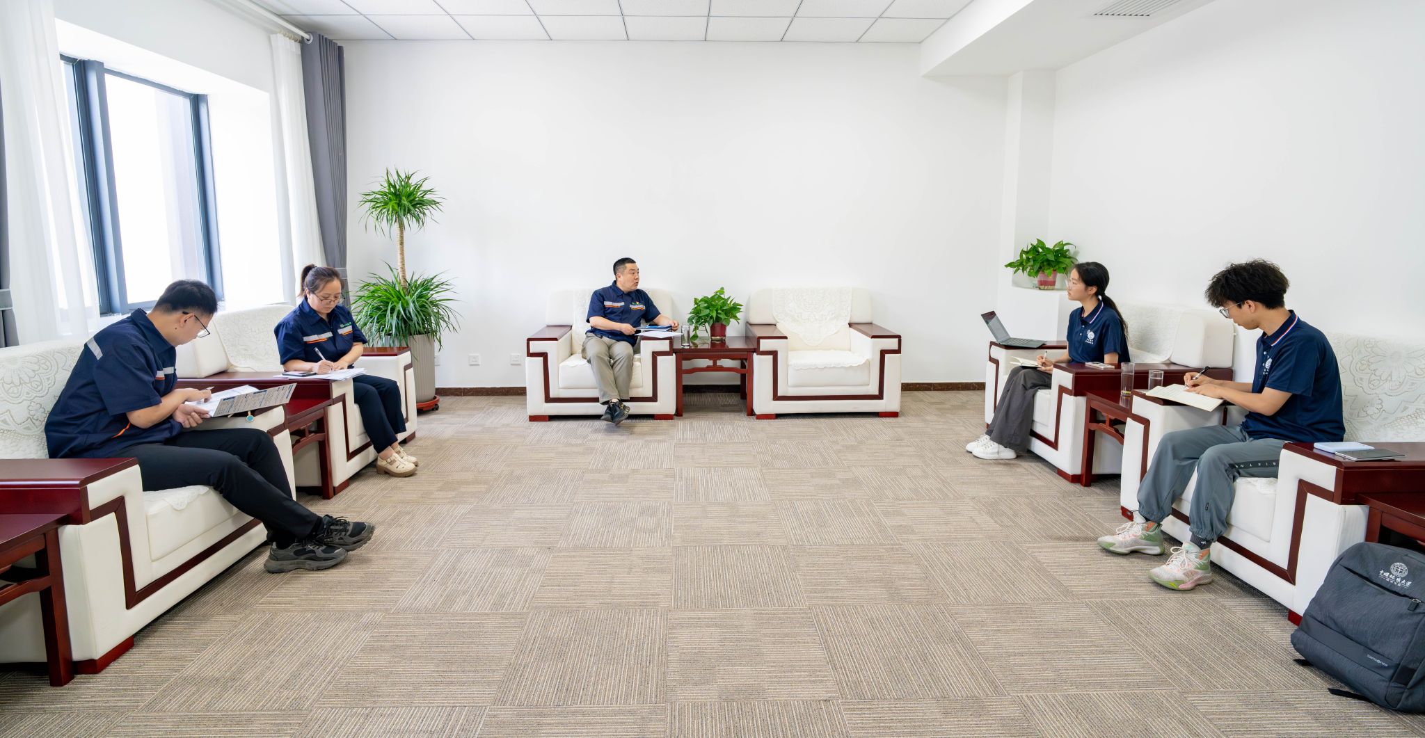 实践团与沁水能投党委副书记兼工会主席张朝晖、人力资源部副部长王江丽、党办负责人张丁瑜,沁水能投全资子公司山西舜新能源有限公司执行董事王大文进行座谈交流。实践团介绍了来访目的和校院的基本情况,并针对未来就业选择和职业生涯规划等内容进行提问。单位与会代表进行耐心的答疑解惑。