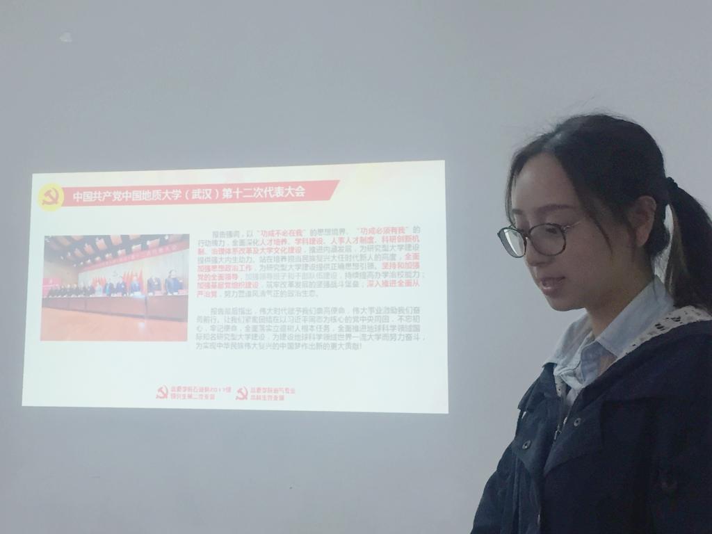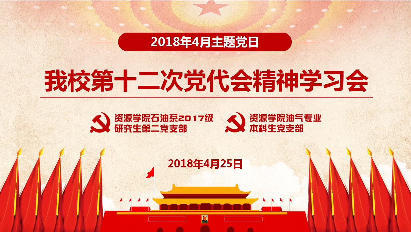 第十二次党代会精神,包括会议主题、会议报告提纲以及提出的奋斗目标等内容,并提出与会党员应充分发挥先锋模范作用,为建校一百年时实现“建成地球科学领域世界一流跳高高电子